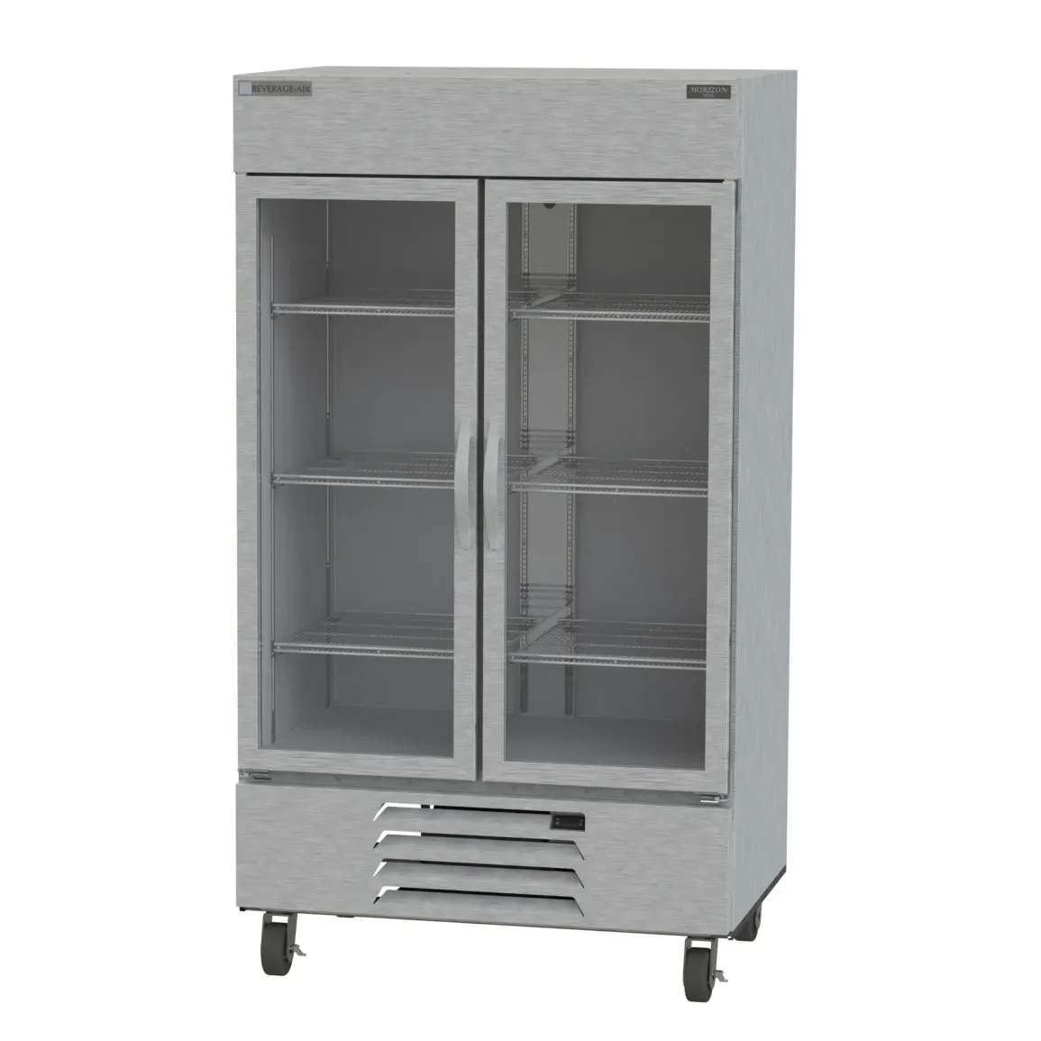 Realize kitchen dreams with the Beverage Air HBR44HC-1-G Refrigerator, Reach-In. This Horizon Series refrigerator is designed to meet the needs of commercial restaurants, offering a spacious 40.2 cu. ft. capacity. With its two-section design, it features a right-hand hinged glass door and a left-hand hinged glass door, allowing for easy access and visibility of your stored items. The anti-microbial door handles ensure a hygienic environment, while the six adjustable shelves provide flexibility in organizing your products. The electronic control and digital display make it easy to monitor and adjust the temperature settings. The stainless steel interior and exterior not only provide durability but also give a sleek and professional look to your kitchen. With bottom-mounted self-contained refrigeration and R290 Hydrocarbon refrigerant, this refrigerator is energy-efficient and environmentally friendly. Trust in the quality of Beverage Air, a reputable brand that proudly manufactures its products in the USA. Elevate your restaurant's storage capabilities with the Beverage Air HBR44HC-1-G Refrigerator, Reach-In.
