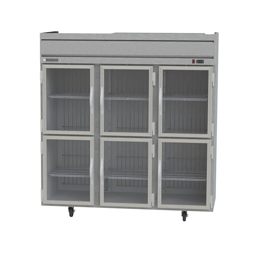 Empower your kitchen staff with the Beverage Air HF3HC-1HG Freezer, Reach-In. This Horizon Series freezer is designed to meet the demands of a busy commercial restaurant. With its spacious three-section design and a capacity of 69.1 cu. ft., this freezer provides ample storage space for all your frozen ingredients and products. The unit features two center half glass doors, two right half glass doors, and two left half glass doors, all equipped with door locks for added security. The nine adjustable shelves allow for flexible organization and easy access to your items. The electronic control and digital display make it simple to monitor and adjust the temperature as needed. The top-mounted self-contained refrigeration system ensures efficient cooling, while the R290 Hydrocarbon refrigerant is environmentally friendly. Made in the USA, this Beverage Air freezer combines durability, functionality, and energy efficiency, making it a valuable addition to any commercial kitchen.
