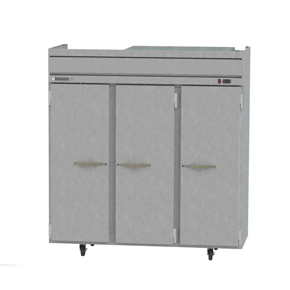 Craft culinary wonders with the Beverage Air HF3HC-1S Freezer, Reach-In. This Horizon Series freezer is designed to meet the demands of a commercial restaurant, offering a spacious 69.1 cu. ft. capacity to store all your ingredients and prepared dishes. With three sections and adjustable shelves, you can easily organize and access your items. The freezer features three solid doors, each with a lock for added security. The top-mounted self-contained refrigeration system ensures efficient cooling, while the automatic defrost feature saves you time and effort. The LED interior lighting and digital display make it easy to monitor and find what you need. Made in the USA, this freezer is built to last with a stainless steel front, aluminum interior, and gray painted sides. With its expansion valve technology and R290 Hydrocarbon refrigerant, this freezer is not only reliable but also environmentally friendly. Elevate your culinary creations with the Beverage Air HF3HC-1S Freezer, Reach-In.