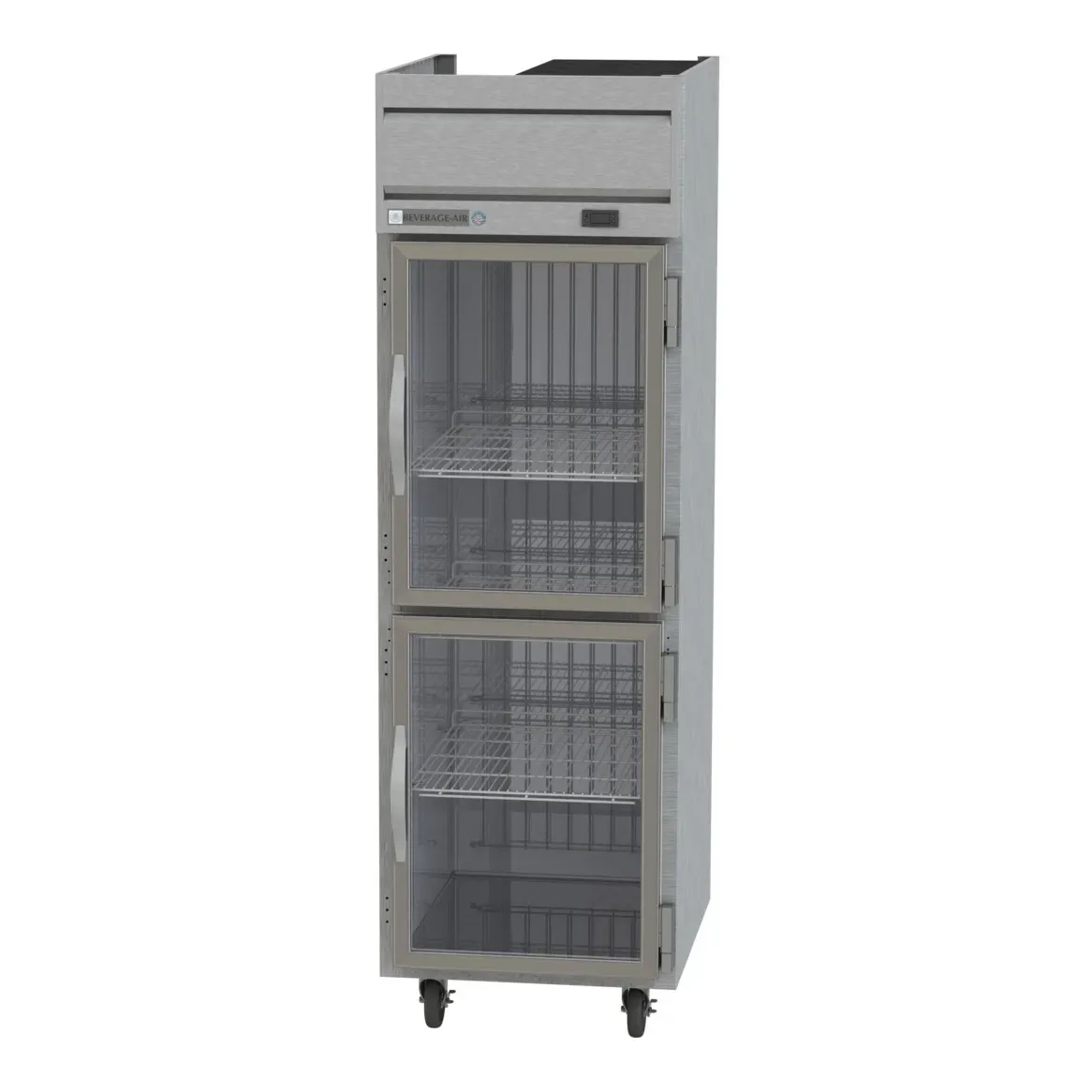 Cooking at its finest begins with the Beverage Air HFP1HC-1HG Freezer, Reach-In. This Horizon Series freezer is designed to meet the demands of a commercial restaurant, offering a spacious 21.06 cu. ft. capacity to store all your frozen ingredients and prepared dishes. With two right-hand hinged half glass doors, you can easily see and access your inventory, while the three adjustable shelves provide flexible storage options. The electronic control and digital display make it simple to monitor and adjust the temperature, ensuring your food stays at the optimal level of freshness. The expansion valve technology and automatic defrost feature further enhance the efficiency of this freezer. Made in the USA with a stainless steel front and sides, as well as an aluminum interior, this Beverage Air freezer is not only durable but also meets cULus, UL EPH Classified, and UL-Sanitation standards. Upgrade your restaurant's storage capabilities with the Beverage Air HFP1HC-1HG Freezer, Reach-In.