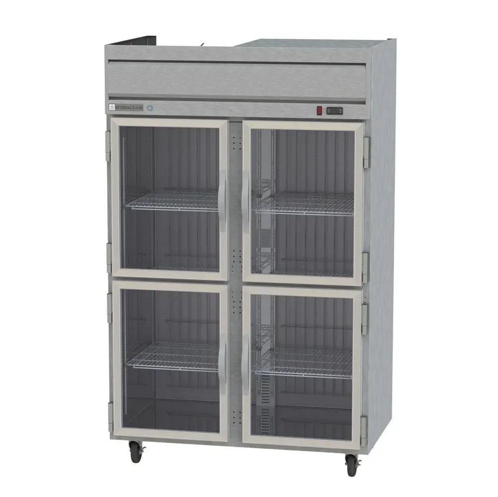 Upgrade your restaurant kitchen with the Beverage Air HR2HC-1HG Refrigerator, Reach-In. This Horizon Series refrigerator is designed to meet the demands of a busy commercial restaurant. With a spacious 46.88 cu. ft. capacity, it provides ample storage space for all your ingredients and supplies. The unit features two right-hand hinged half glass doors and two left-hand hinged glass doors, allowing for easy visibility and access to your items. The six shelves provide organized storage options, while the electronic control and digital display make it easy to monitor and adjust the temperature. The LED interior lighting illuminates the contents, making it easy to find what you need. Made in the USA, this refrigerator is built to last with a stainless steel front and gray painted sides. The top-mounted self-contained refrigeration system ensures efficient cooling, while the R290 Hydrocarbon refrigerant and Variable Speed Technology contribute to energy savings. Certified by cULus and UL-Sanitation, this refrigerator is a reliable and safe choice for your restaurant. Upgrade your kitchen with the Beverage Air HR2HC-1HG Refrigerator, Reach-In and experience enhanced efficiency and convenience.