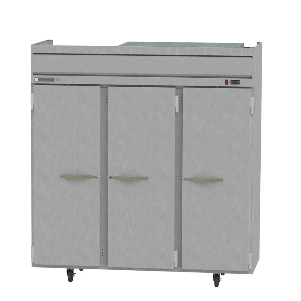 Elevate your dining experience with the Beverage Air HR3HC-1S Refrigerator, Reach-In. This Horizon Series refrigerator is designed to meet the demands of a commercial restaurant, offering a spacious 71.52 cu. ft. capacity to store all your perishable ingredients. With three sections and three solid doors, this refrigerator provides easy access to your supplies, while the door locks ensure the security of your stock. The stainless steel front and gray painted sides give it a sleek and professional look, perfect for any kitchen setting. The top-mounted self-contained refrigeration system ensures efficient cooling, while the R290 Hydrocarbon refrigerant is environmentally friendly. The Variable Speed Technology allows you to adjust the cooling speed according to your needs, saving energy and reducing costs. With electronic control, LED interior lighting, and a digital display, this refrigerator offers convenience and ease of use. Trust in the quality and reliability of Beverage Air, a trusted name in the industry. Upgrade your restaurant's refrigeration system with the Beverage Air HR3HC-1S Refrigerator, Reach-In.
