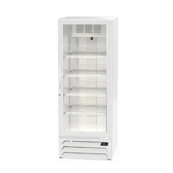 Achieve kitchen supremacy with the Beverage Air MMF12HC-1-W Freezer Merchandiser. This one-section reach-in freezer is designed to meet the demands of a commercial restaurant setting. With its 11.9 cu. ft. capacity and four epoxy coated steel shelves, you'll have ample space to store and display your frozen goods. The triple pane hinged glass door not only provides a clear view of the contents but also helps to maintain the internal temperature. The electronic control and digital display make it easy to monitor and adjust the settings, ensuring optimal performance. The LED interior lighting and lighted sign panel enhance visibility, attracting customers to your frozen treats. The self-closing door with an automatic hold-open feature and anti-microbial door handles add convenience and hygiene. With bottom-mounted refrigeration and R290 Hydrocarbon refrigerant, this freezer merchandiser is energy-efficient and environmentally friendly. Trust Beverage Air, a reputable brand known for its quality and reliability. Elevate your restaurant's frozen food display with the Beverage Air MMF12HC-1-W Freezer Merchandiser.