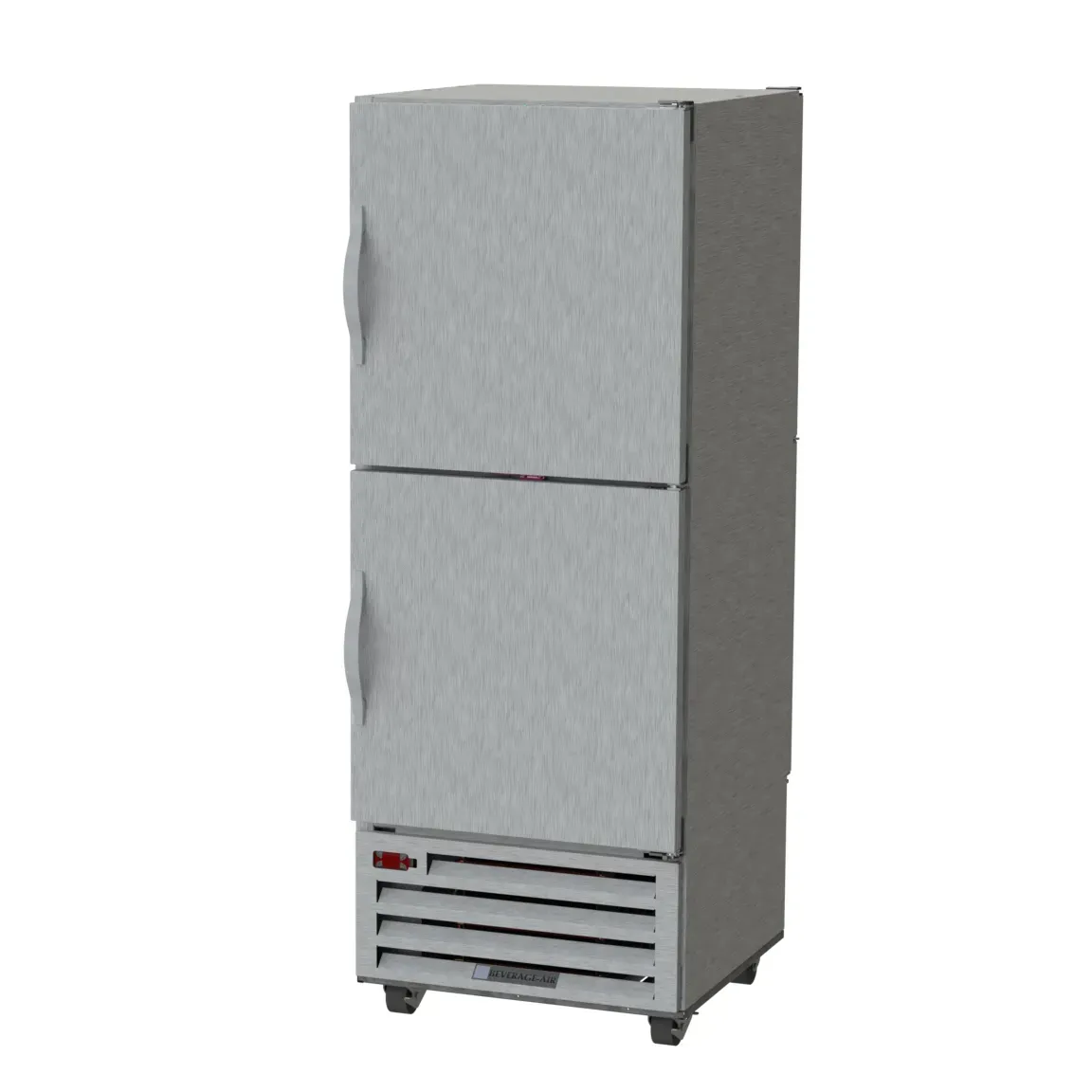 Achieve kitchen supremacy with the Beverage Air RI18HC-HS Reach-In Refrigerator. This one-section refrigerator is designed to meet the demands of a commercial restaurant, offering a spacious 16.85 cu. ft. capacity to store all your perishable ingredients. The two solid hinged half doors provide easy access to the contents, while the five adjustable shelves allow for flexible storage options. With LED interior lighting, you can easily locate items even in low-light conditions. The bottom-mounted self-contained refrigeration system ensures efficient cooling and easy maintenance. Made in the USA with a stainless steel exterior and interior, this refrigerator is built to withstand the rigors of a busy kitchen. Equipped with 3" casters, it can be easily moved for cleaning or rearranging. The use of R290 Hydrocarbon refrigerant makes it environmentally friendly. Trust Beverage Air to deliver reliable refrigeration solutions for your commercial kitchen.