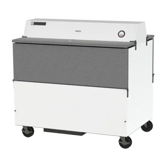 Master your restaurant's kitchen with the Beverage Air STF49HC-1-W Milk Cooler / Station. This top-of-the-line milk cooler is designed to meet the needs of busy commercial kitchens. With its spacious 20.55 cu. ft. capacity and dual access, you can easily store and access a large quantity of milk cartons. The exterior digital thermometer and full electronic control ensure precise temperature management, while the flat top carton capacities allow for efficient storage. The four self-latching doors/lids with safety bumpers provide easy access and prevent accidents. Made in the USA, this milk cooler features a white exterior and a galvanized steel interior for durability. The epoxy coated steel wire floor racks and floor drain make cleaning a breeze. With its auto defrost feature and R290 Hydrocarbon refrigerant, this milk cooler is not only efficient but also environmentally friendly. Trust Beverage Air to deliver high-quality equipment for your restaurant's kitchen.
