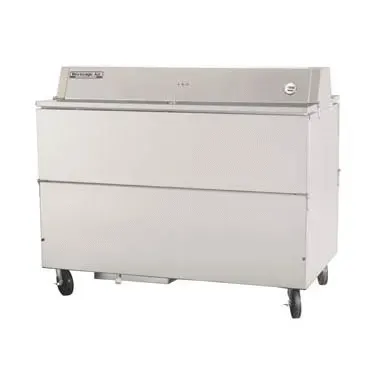 Elevate your dining experience with the Beverage Air STF58HC-1-S Milk Cooler / Station. This school milk cooler is designed to meet the demands of a commercial restaurant, offering a spacious 24.3 cu. ft. capacity and dual access for easy organization and retrieval of beverages. The exterior digital thermometer and full electronic control ensure precise temperature management, while the flat top carton capacities allow for efficient storage of either (16) 13" x 13" x 11" or (10) 19" x 13" x 11" cases. With four self-latching doors/lids equipped with safety bumpers and a cylinder lock, you can rest assured that your beverages are secure. The stainless steel interior and exterior not only provide durability but also make cleaning a breeze. Additionally, the R290 Hydrocarbon refrigerant and auto defrost feature contribute to energy efficiency and maintenance ease. Trust in the quality and reliability of Beverage Air, a brand known for its commitment to excellence. Upgrade your restaurant's beverage storage with the Beverage Air STF58HC-1-S Milk Cooler / Station.