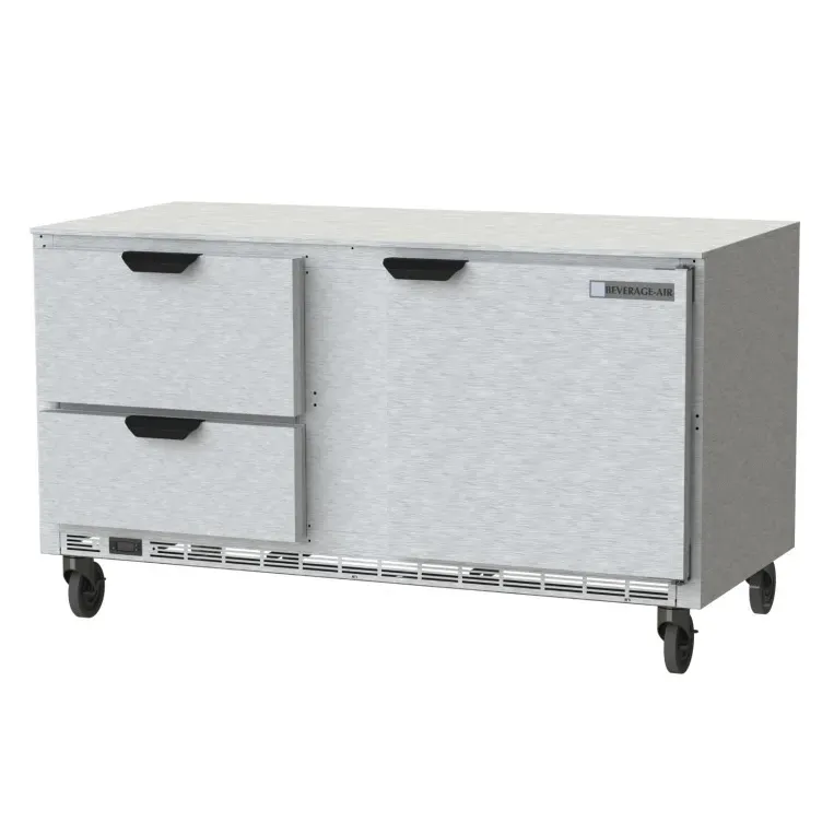 Kitchen innovation at its best, the Beverage Air UCFD60AHC-2 Freezer is a game-changer for commercial restaurants. With its sleek stainless steel exterior and top, this undercounter freezer adds a touch of sophistication to any kitchen. Boasting a spacious 17.1 cu. ft. capacity, it features two drawers and one door, along with two shelves, providing ample storage space for all your frozen goods. The aluminum interior ensures durability and easy cleaning, while the rear-mounted self-contained refrigeration system guarantees optimal temperature control. Made in the USA, this freezer is not only reliable but also environmentally friendly, thanks to its use of R290 Hydrocarbon refrigerant. With a powerful 1/2 HP motor, this unit is cULus and UL-Sanitation certified, ensuring it meets the highest industry standards. Upgrade your kitchen with the Beverage Air UCFD60AHC-2 Freezer and experience the perfect blend of style, functionality, and efficiency.