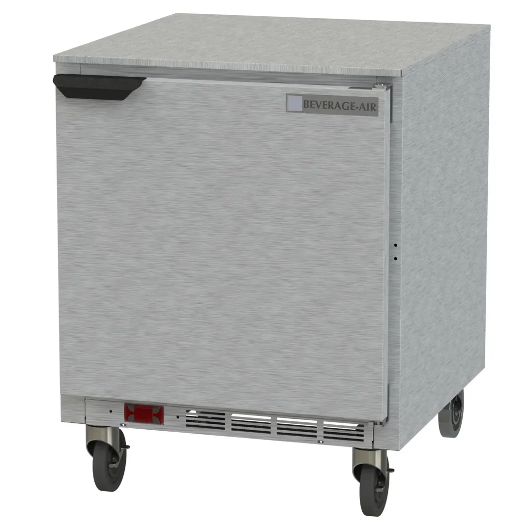 Culinary artistry redefined with the Beverage Air UCR27AHC Undercounter Refrigerator. This one-section refrigerator is designed to meet the needs of commercial restaurants, offering a spacious 6.13 cu. ft. capacity to store all your ingredients and beverages. The stainless steel exterior and top not only provide a sleek and professional look but also ensure durability and easy cleaning. Inside, the aluminum interior and two shelves offer ample storage space and organization options. The rear-mounted self-contained refrigeration system keeps your items at the perfect temperature, while the use of R290 Hydrocarbon refrigerant ensures energy efficiency and environmental friendliness. With a 1/6 HP compressor, this refrigerator is powerful enough to handle the demands of a busy kitchen. Certified by cULus and UL-Sanitation, you can trust in the quality and safety of this Made in USA product. Upgrade your restaurant's refrigeration capabilities with the Beverage Air UCR27AHC Undercounter Refrigerator.