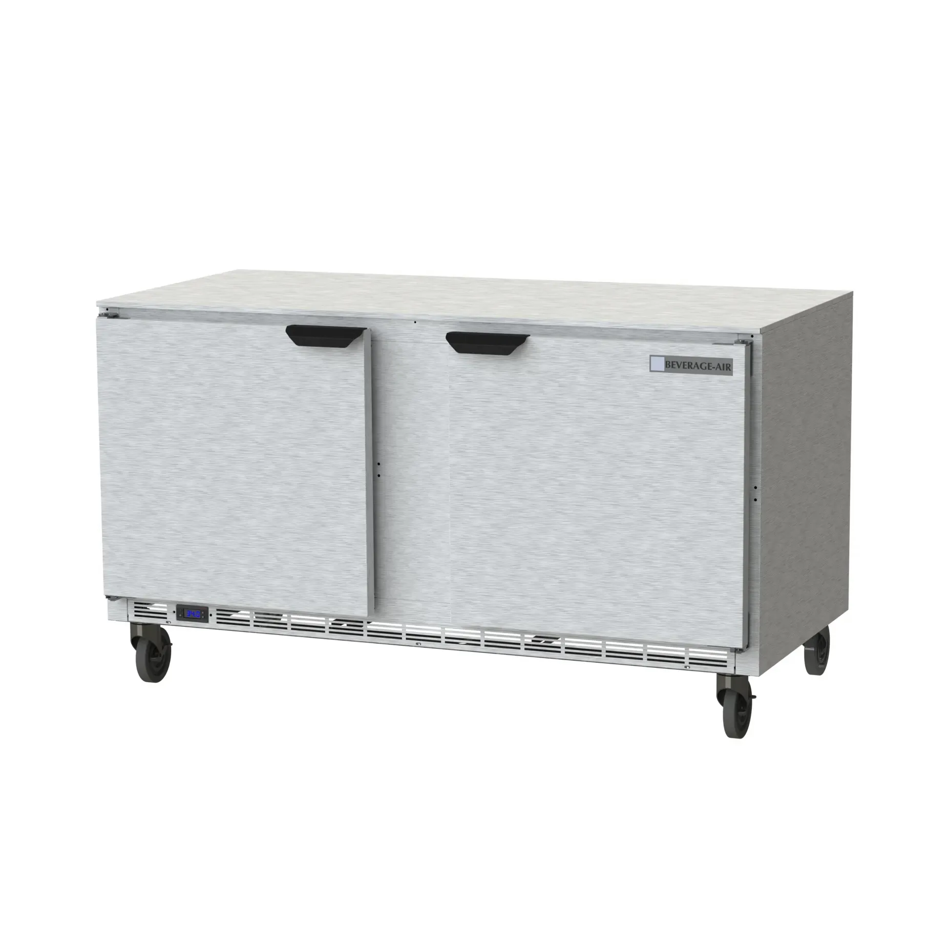 Take your kitchen to the next level with the Beverage Air UCR60AHC Undercounter Refrigerator. This two-section refrigerator is designed to meet the needs of commercial restaurants, providing ample storage space and reliable refrigeration. With a spacious 60"W and 14.75 cu. ft. capacity, this unit features two doors and four shelves, allowing for easy organization and access to your ingredients. The stainless steel exterior and top not only give it a sleek and professional look but also ensure durability and easy cleaning. The aluminum interior is resistant to corrosion and provides excellent insulation. The rear-mounted self-contained refrigeration system keeps your food at the perfect temperature, while the R290 Hydrocarbon refrigerant is environmentally friendly. With a 1/5 HP compressor, this refrigerator is energy-efficient and cost-effective. Trust in the quality and authenticity of Beverage Air, a reputable brand that manufactures its products in the USA. Elevate your restaurant's efficiency and productivity with the Beverage Air UCR60AHC Undercounter Refrigerator.