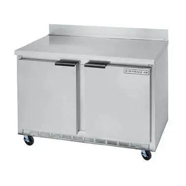 Cook with confidence and flair with the Beverage Air WTF48AHC Freezer Counter. This two-section worktop freezer is designed to meet the demands of a busy commercial restaurant. With a spacious 48" width and 11.04 cu. ft. capacity, it provides ample storage space for your frozen ingredients and prepared dishes. The two solid doors and four shelves make organization a breeze, while the snap-in door gaskets ensure a tight seal to keep your food fresh. The stainless steel front and aluminum interior are not only durable but also easy to clean, maintaining a hygienic environment. The 2-1/2" thick top and sides, along with the 4" removable backsplash, add to the unit's sturdiness and functionality. Powered by a 1/2 HP rear-mounted self-contained refrigeration system using R290 Hydrocarbon refrigerant, this freezer counter is energy-efficient and environmentally friendly. Trust in the quality and reliability of Beverage Air, a trusted name in commercial refrigeration.