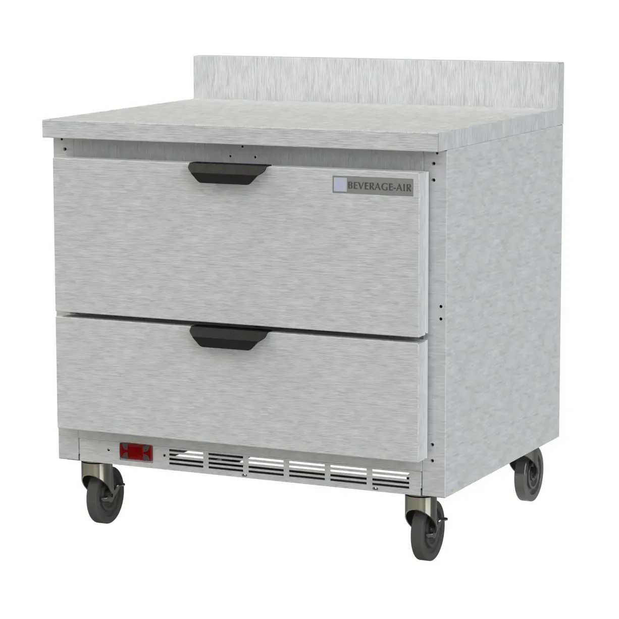 Deliver food perfection with the Beverage Air WTRD36AHC-2-FIP Refrigerated Counter. This worktop refrigerator is designed to meet the demands of a busy commercial restaurant. With its stainless steel exterior and top, it not only looks sleek but also ensures durability and easy cleaning. The 4" foamed-in place backsplash adds an extra layer of convenience, preventing spills and messes from reaching the wall. The two drawers provide ample storage space for ingredients, allowing for easy access and organization. The rear-mounted self-contained refrigeration system ensures efficient cooling, while the R290 Hydrocarbon refrigerant is environmentally friendly. Made in the USA, this worktop refrigerator is cULus and UL-Sanitation certified, guaranteeing its quality and safety. Trust Beverage Air to deliver the perfect solution for your restaurant's refrigeration needs.