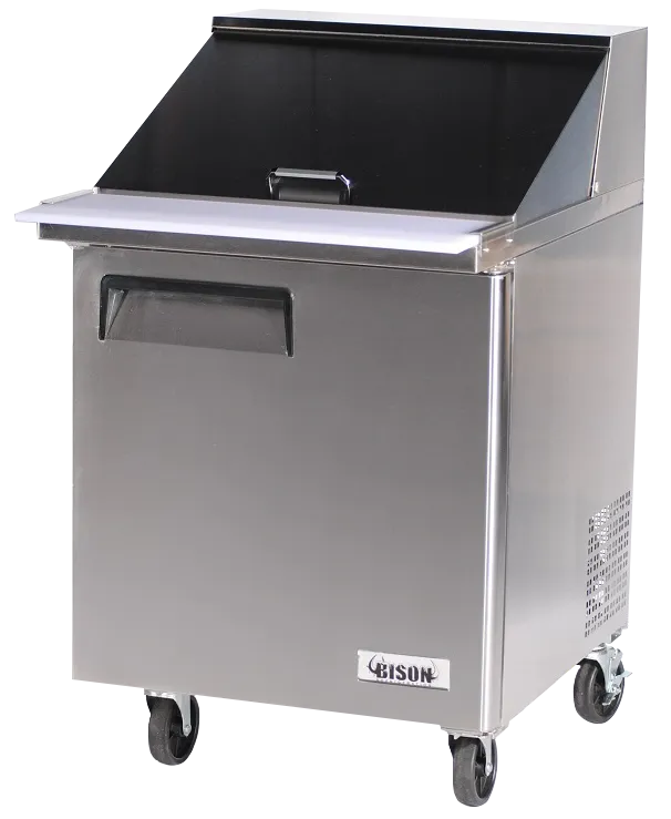 Optimize your space with the Bison Refrigeration Mega Top Sandwich Unit. Designed specifically for the demanding environment of a busy restaurant, this one-section unit offers a generous 7.9 cu. ft. capacity, ensuring you have ample space to store and organize your ingredients efficiently. The rear-mounted self-contained refrigeration system keeps your items at the perfect temperature, while the self-closing stainless steel door ensures energy efficiency and convenience.