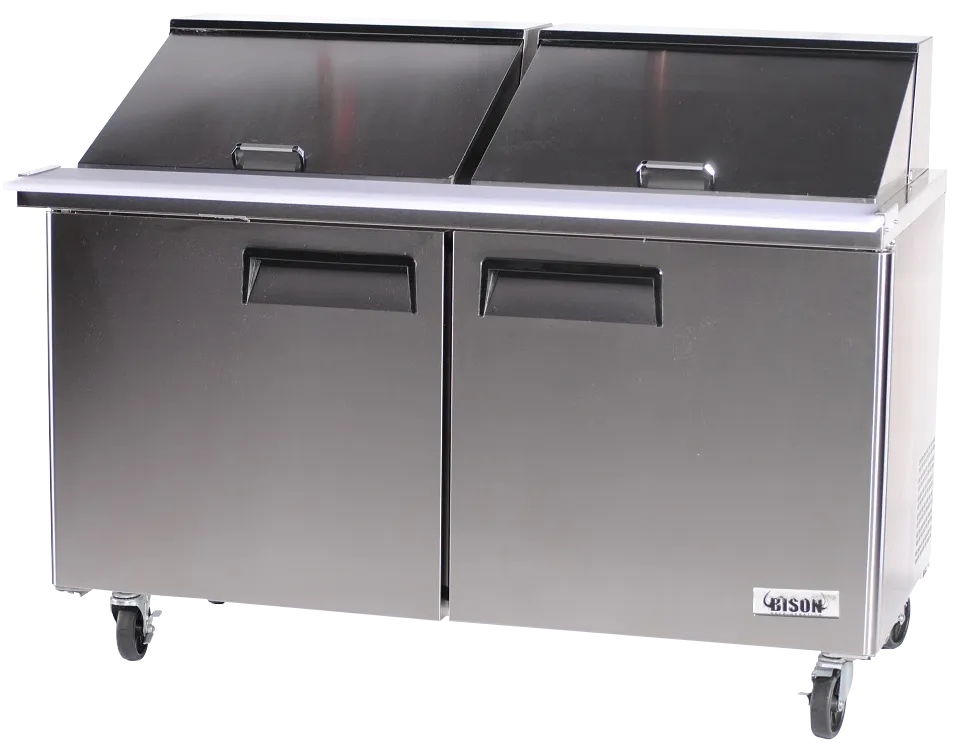 Maintain top hygiene standards using the Bison Refrigeration Mega Top Sandwich Unit. This high-performance unit, model BST6024, is designed to meet the rigorous demands of a busy restaurant environment. With a spacious 18.6 cu. ft. capacity, it offers ample storage for all your sandwich ingredients, ensuring they are kept fresh and ready for service.