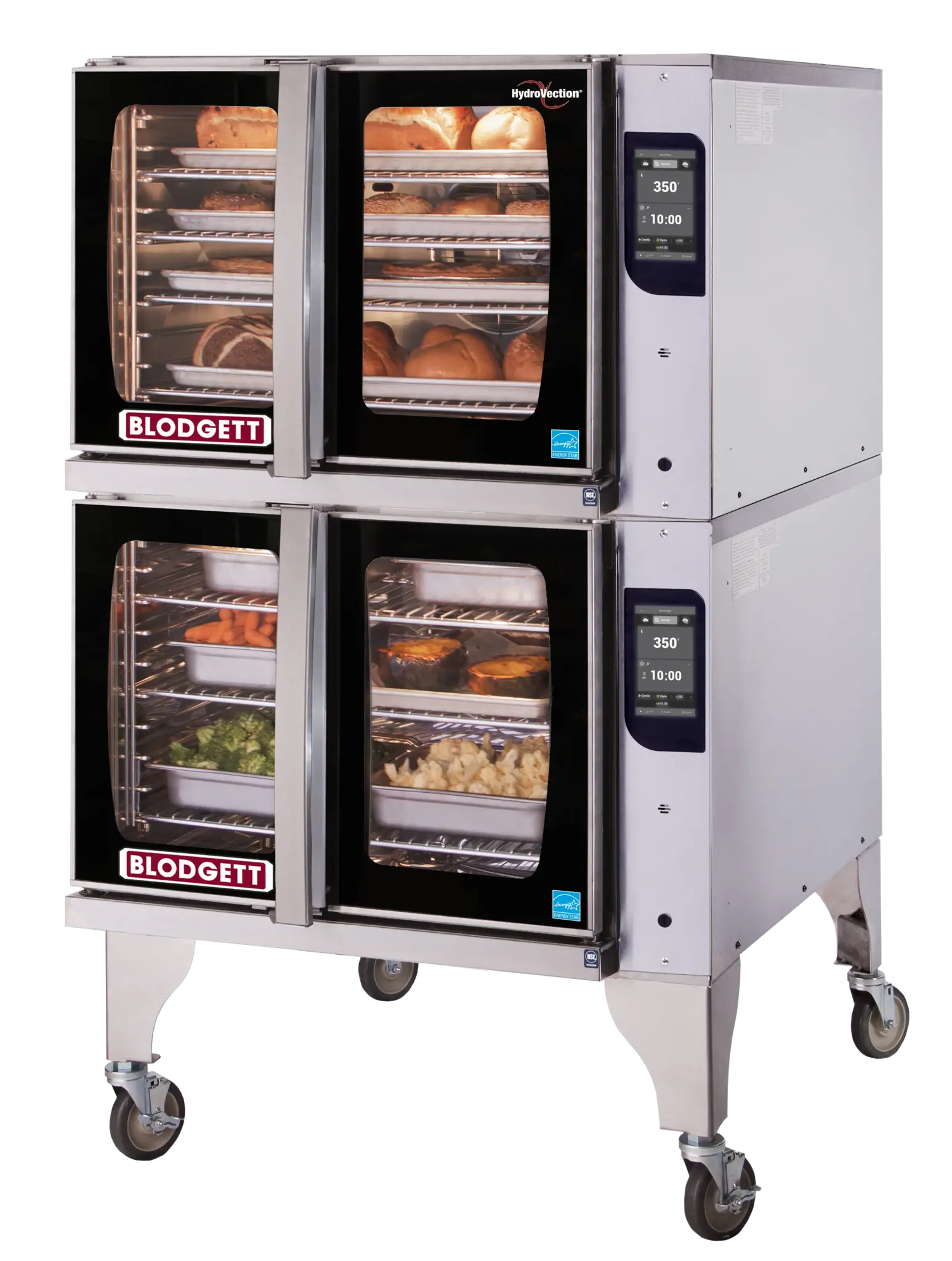 The Blodgett Hydrovection is the only split door, continuously humidified oven on the market. With its compact 38” footprint, the same as your convection oven, the Hydrovection saves space in your kitchen. The Hydrovection allows you to do more, bake, roast, gratinate, poach - in less space. Hydrovection, it’s practically a Combi at half the price! HVH Hydrovection ovens feature Blodgett’s patented Helix Technology which forces air into the oven cavity evacuating laden moisture, improving product quality while reducing cook times. Helix offers up to 30% faster cook times and 20% better yields on existing recipes. HVH-100GDBL is a double stack oven and includes 8-1/2” stainless steel legs, casters and stacking kit