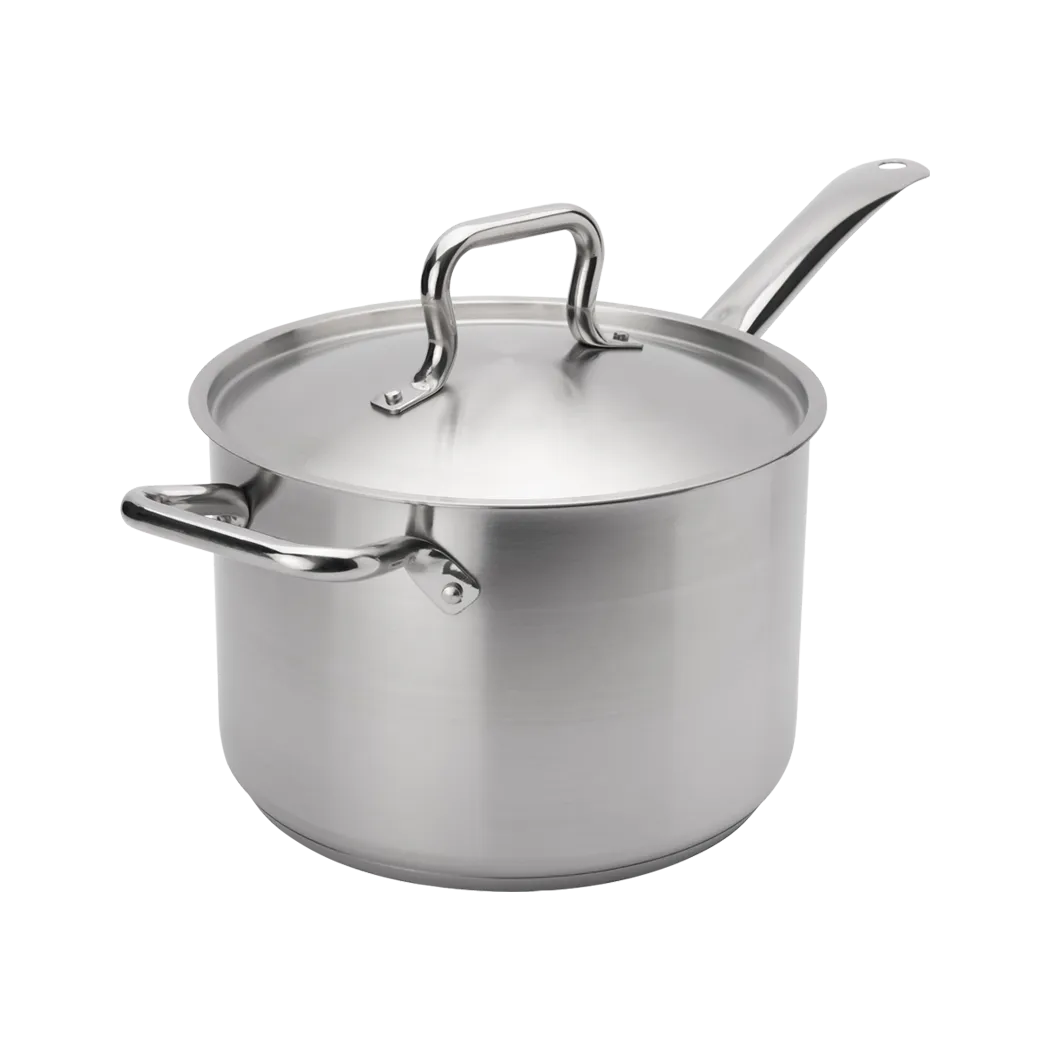 Enhance the dining experience with precision utensils. Introducing the Browne Foodservice, 5734034, Cookware - ELEMENTS Cookware. This stainless steel sauce pan is a must-have for any commercial restaurant. With a generous capacity of 4.5qt/4.25L, it allows for large batch cooking, perfect for busy kitchens. The included cover helps to retain heat and flavors, ensuring that your dishes are cooked to perfection every time. Made with high-quality materials, this sauce pan is NSF certified, guaranteeing its durability and safety for commercial use. Whether you're simmering sauces, boiling pasta, or making soups, this sauce pan is designed to deliver exceptional results. Upgrade your kitchen with this reliable and versatile cookware, and elevate your culinary creations to new heights.