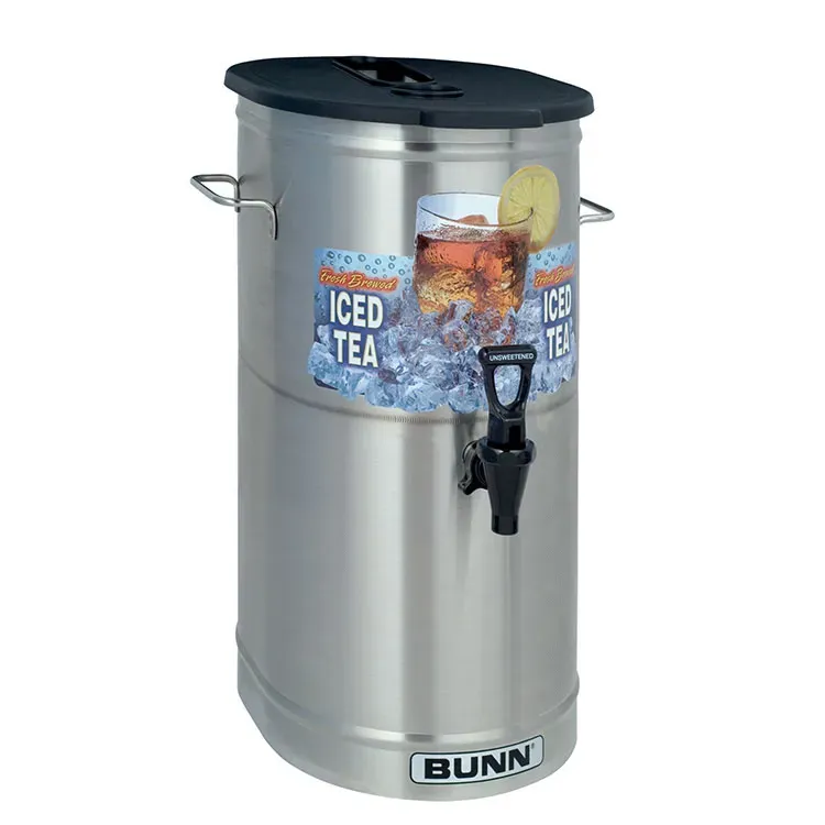 Introducing the Bunn 34100.0002 Tea / Coffee Dispenser, a must-have for any commercial restaurant. With its 4-gallon capacity and sump dispense valve, this dispenser ensures a steady supply of refreshing iced tea or coffee for your customers. The oval shape brew-through plastic lid and labeled faucet handles for sweetened and unsweetened options make it easy to serve a variety of beverages. The side handles provide convenient portability, allowing you to move the dispenser effortlessly from the kitchen to the dining area. NSF certified, this dispenser meets the highest standards of quality and safety. Whether you're running a bustling caf or a busy diner, the Bunn 34100.0002 Tea / Coffee Dispenser is designed to keep up with the demands of a commercial restaurant. Trust Bunn, a reputable vendor in the industry, to deliver a reliable and efficient solution for your beverage service needs.