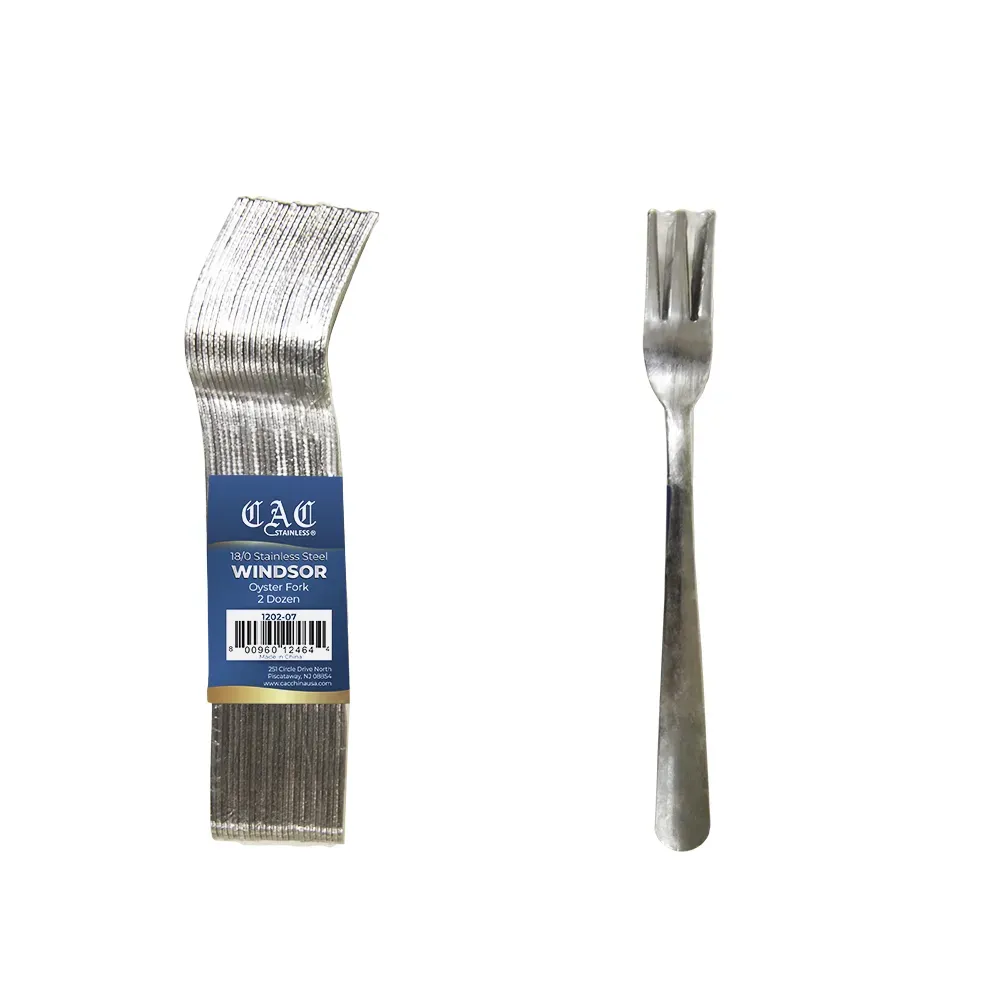 Elevate your dining experience with the elegant Windsor CPK Oyster Fork, crafted with precision and designed to enhance your seafood presentation. This exquisite oyster fork, measuring a perfect 5 1/2 inches, is an essential utensil for any seafood enthusiast or professional chef. Made from durable 18/0 stainless steel, it offers a medium weight that balances perfectly in your hand, ensuring both functionality and style. Its sleek and polished finish complements any table setting, while its sturdy construction promises longevity and resistance to corrosion, making it ideal for both casual dining and upscale events. Designed with a classic three-pronged layout, this oyster fork allows for effortless shucking and serving of oysters, clams, and other shellfish with ease and grace. Its refined design not only adds sophistication to your dining table but also enhances the overall culinary experience for your guests. Whether you're hosting a lavish seafood feast or simply enjoying a quiet evening with oysters on the half shell, the Windsor CPK Oyster Fork is the perfect tool to ensure a seamless and enjoyable meal. Embrace the art of dining with this timeless piece that combines practicality with elegance, making every seafood occasion a memorable one.