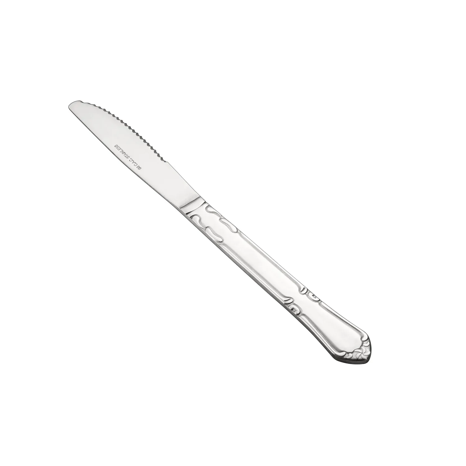 Elevate your dining experience with the exquisite Elizabeth Dinner Knife Frost, a perfect blend of elegance and functionality that enhances any table setting. Crafted from premium 18/0 stainless steel, this dinner knife boasts impressive resistance to corrosion and wear, ensuring long-lasting durability and a pristine appearance over time. The knife measures 8 5/8 inches, providing a comfortable and balanced grip that makes cutting through your favorite dishes effortless. Its sophisticated frost finish adds a touch of refined luxury, making it ideal for both casual meals and formal gatherings. Designed to complement a wide range of tableware styles, the Elizabeth Dinner Knife embodies timeless elegance and superior craftsmanship. Whether you're hosting an intimate dinner party or simply enjoying a family meal, this knife promises to deliver a flawless dining experience. Its robust construction and elegant design make it a versatile addition to any cutlery collection, perfect for those who appreciate quality and style in every detail. Discover the perfect combination of beauty and performance with the Elizabeth Dinner Knife Frost, where every meal becomes a celebration of taste and sophistication.