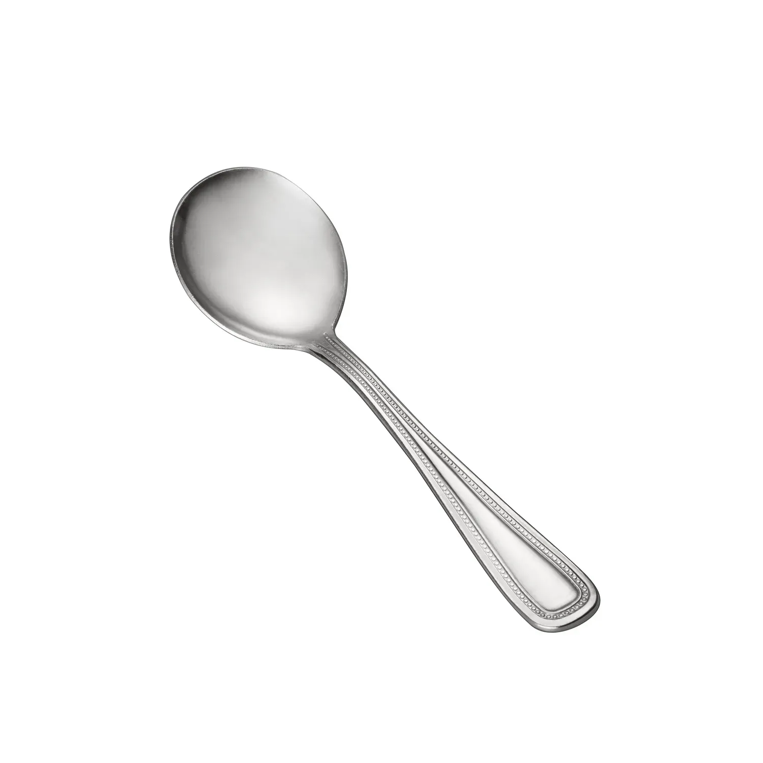 Elevate your dining experience with our exquisite Pearl Bouillon Spoon, expertly crafted for both elegance and functionality. Measuring a refined 6 1/4 inches, this spoon is designed to deliver a seamless blend of style and practicality, making it an essential addition to any sophisticated table setting. Constructed from durable 18/0 stainless steel, it promises longevity and resistance to corrosion, ensuring it maintains its lustrous finish through countless uses. The Pearl Bouillon Spoon features a timeless design, adorned with a subtle beaded edge that adds a touch of classic charm to your flatware collection. Perfectly balanced and with a comfortable grip, it is ideal for savoring delicious broths and hearty soups. Whether used in a high-end restaurant or for a cozy family meal, this spoon enhances the dining experience with its impeccable craftsmanship and attention to detail. Its versatile appeal complements both modern and traditional table settings, making it a versatile choice for any occasion. Treat yourself and your guests to the luxurious feel of this Pearl Bouillon Spoon, where quality meets sophistication in every scoop.