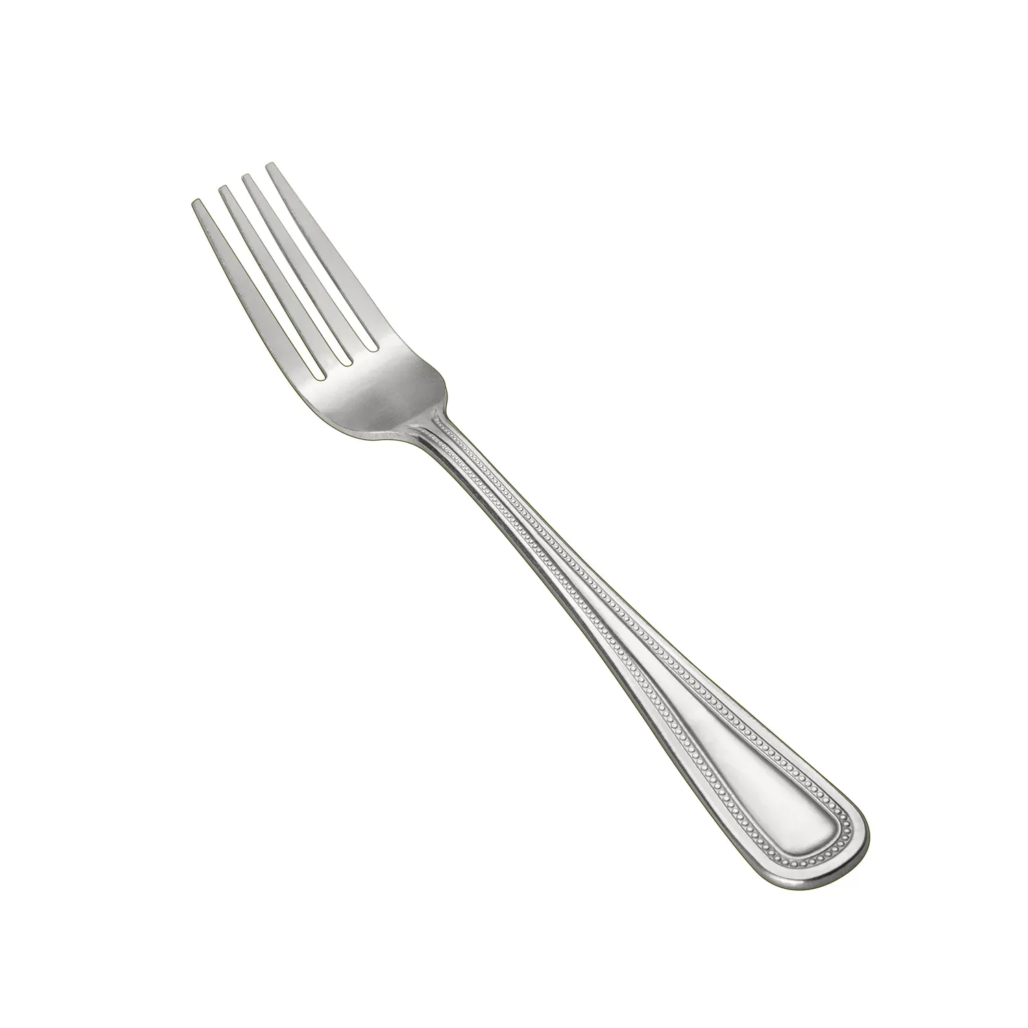 Elevate your dining experience with the exquisite Pearl Dinner Fork, a masterpiece of design and functionality crafted for those who appreciate the finer things in life. Measuring an elegant 7 1/2 inches, this fork is expertly fashioned from high-quality 18/0 stainless steel, ensuring durability and resistance to rust, while maintaining a stunning, polished appearance. Its heavyweight construction provides a pleasing heft, adding a touch of sophistication to every meal. The Pearl Dinner Fork features a timeless beaded edge pattern along the handle, offering a classic, yet contemporary elegance that complements any table setting, from casual family dinners to formal gatherings. Designed with a keen eye for detail, the fork's tines are perfectly tapered for effortless use, making it an ideal choice for any culinary creation. Whether you're hosting a dinner party or enhancing your everyday dining experience, this fork combines practicality with an aesthetic appeal that is sure to impress. Add a touch of refinement to your tableware collection with the Pearl Dinner Fork, where elegance meets functionality in a seamless blend.