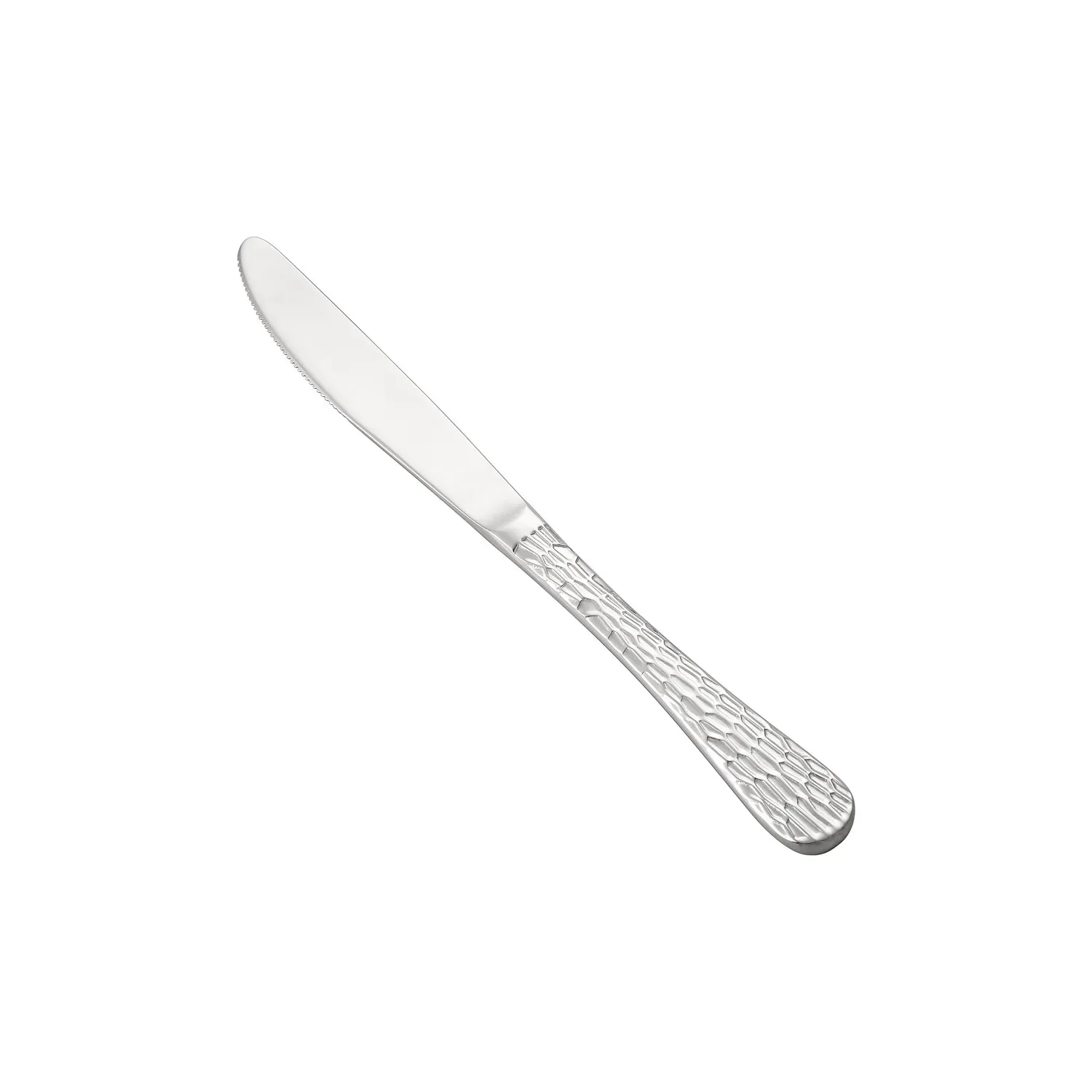 Elevate your dining experience with our exquisite Celtic Dinner Knife, crafted with precision and elegance to transform every meal into a memorable occasion. Featuring a robust 18/0 stainless steel construction, this knife promises unparalleled durability and corrosion resistance, ensuring it remains a staple in your cutlery collection for years to come. With a length of 9-1/4 inches, it offers the perfect balance of form and function, making it a versatile addition to any table setting. The intricate Celtic design adds a touch of sophistication and timeless charm, perfect for both casual gatherings and formal celebrations. Its ergonomic handle provides a comfortable grip, allowing for effortless slicing and cutting, while its mirror-polished finish enhances its visual appeal, catching the light beautifully. Whether you're hosting a lavish dinner party or enjoying a quiet family meal, this dinner knife seamlessly blends traditional craftsmanship with modern functionality. Discover the perfect harmony of style and performance with our Celtic Dinner Knife, designed to elevate your dining experience to new heights.