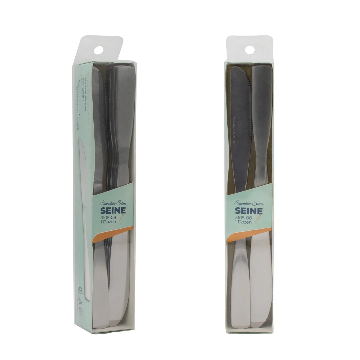 Elevate your dining experience with the Seine CPK Dinner Knife, exquisitely crafted to bring sophistication and functionality to your table. At 8 3/4 inches, this dinner knife is expertly balanced, ensuring a comfortable grip and precise cutting capability. Made from premium 18/0 stainless steel, it boasts exceptional durability and a lustrous finish that adds a touch of elegance to any table setting. The heavy weight (HW) construction provides a robust feel, offering a satisfying heft that speaks to its quality and durability. Perfect for both casual family dinners and formal gatherings, the Seine CPK Dinner Knife seamlessly combines classic design with modern practicality. Its sleek, smooth lines and mirror-like polish make it not only a practical utensil but also a stylish addition to your cutlery collection. Whether you’re slicing through tender meats or spreading creamy butter, this dinner knife promises to enhance every meal with its effortless performance and timeless appeal. Experience the perfect fusion of style, comfort, and utility with the Seine CPK Dinner Knife, an essential piece for any discerning dining connoisseur.