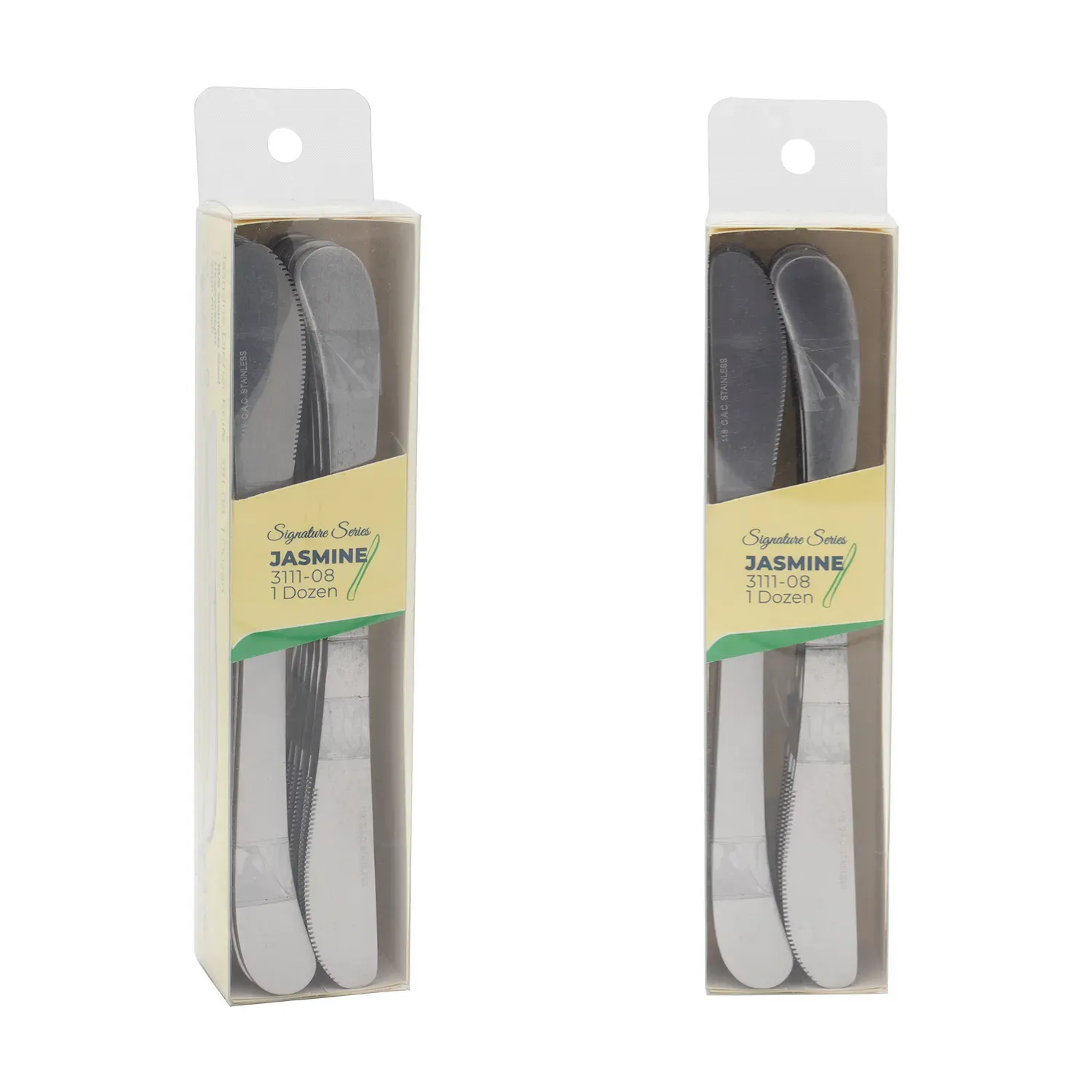 Elevate your dining experience with our exquisite Jasmine CPK Dinner Knife, a perfect blend of elegance and functionality crafted for the modern table setting. Measuring at a precise 7-3/8 inches, this dinner knife is designed to deliver a perfect balance in your hand, ensuring comfortable and precise use. Forged from high-quality 18/0 stainless steel, it promises durability and resistance to corrosion, making it an ideal choice for both casual dining and special occasions. The lustrous finish of this dinner knife not only adds a touch of sophistication to your table but also complements any cutlery collection with its timeless design. Engineered for optimal performance, the knife features a finely honed blade that handles all your culinary tasks with ease, from slicing through tender meats to spreading butter smoothly. Ideal for any dinnerware ensemble, the Jasmine CPK Dinner Knife is more than just a utensil; it is a statement of style and quality. Whether you're hosting a lavish dinner party or enjoying a quiet meal at home, this dinner knife ensures every dining moment is unforgettable. Experience the perfect harmony of form and function with this essential kitchen companion, designed to meet the highest standards of the culinary world.
