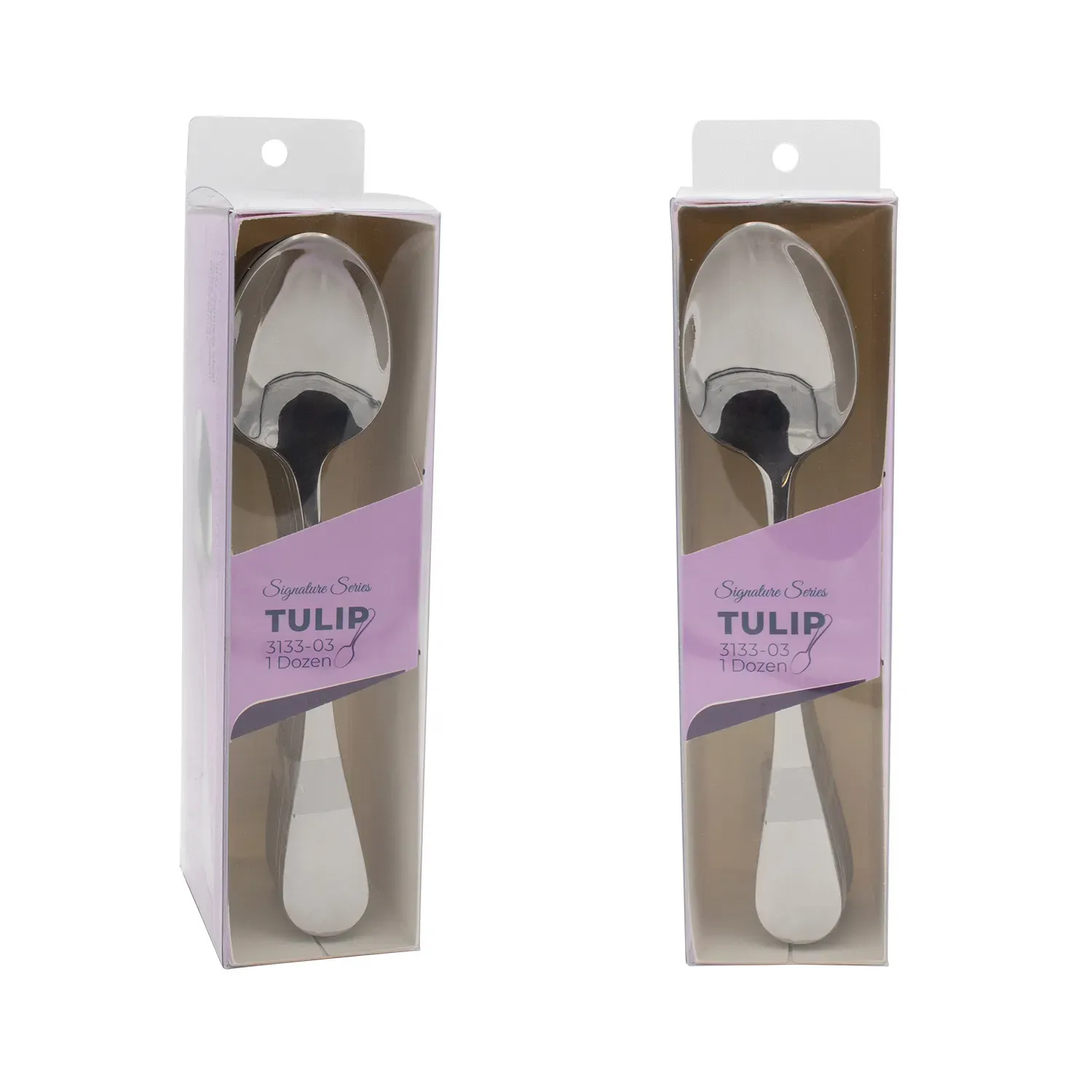 Experience the elegance and functionality of the Tulip CPK Dinner Spoon, a must-have addition to your dining collection. Crafted with precision, this dinner spoon boasts an impressive 18/0 stainless steel composition, ensuring durability and resistance to daily wear and tear while maintaining a sleek, polished finish. Measuring at an ideal 7-1/4 inches, it perfectly balances comfort and sophistication, making every meal a delightful experience. The Tulip design offers a graceful aesthetic, seamlessly integrating into both casual and formal table settings, enhancing your dining ambiance. Its ergonomic handle ensures a comfortable grip, allowing for effortless use whether you're enjoying a hearty stew or a delicate dessert. This dinner spoon's meticulous craftsmanship and robust build make it not only a practical choice for everyday use but also a stylish statement piece for special occasions. Elevate your dining experience with the Tulip CPK Dinner Spoon, where timeless style meets modern functionality, promising to impress both guests and family alike with its understated elegance and superior performance.