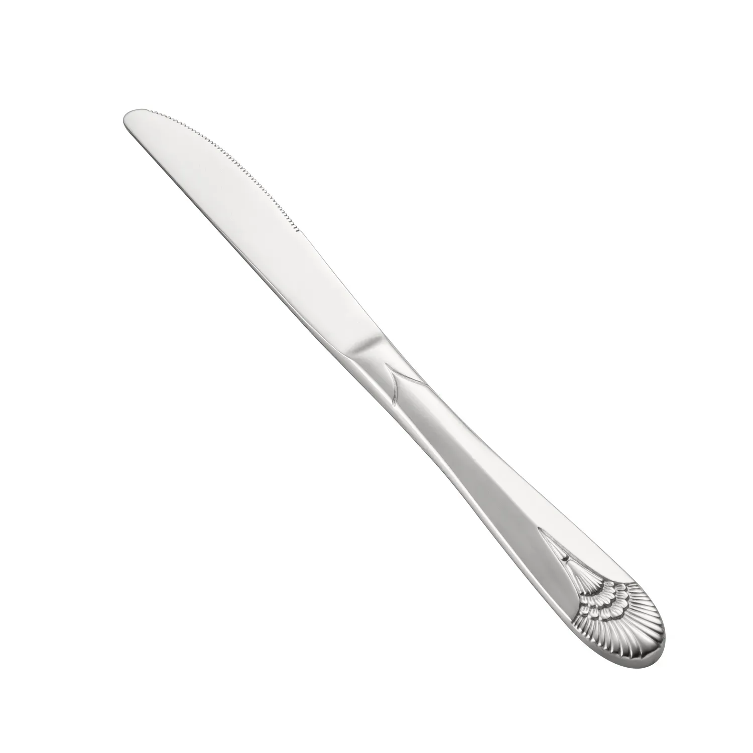 Elevate your dining experience with our exquisite Royal Dinner Knife, crafted from premium 18/8 stainless steel. This elegantly designed dinner knife is a testament to both form and function, offering a distinctive blend of sophistication and durability. Measuring an ideal 8 7/8 inches, it is perfectly balanced for comfortable handling, ensuring that every meal is an occasion. The 18/8 stainless steel composition guarantees resistance to corrosion and tarnish, maintaining its lustrous shine even after countless meals. Whether you're hosting an intimate dinner party or a grand banquet, this dinner knife is designed to complement any table setting with its timeless appeal. Its refined edge and ergonomic handle make cutting and spreading tasks effortless, enhancing the dining experience from start to finish. Invest in a piece that embodies quality and style, making it a must-have addition to any premium flatware collection. Discover the perfect fusion of elegance and practicality with our Royal Dinner Knife, where every detail is meticulously crafted to meet the highest standards of culinary excellence.