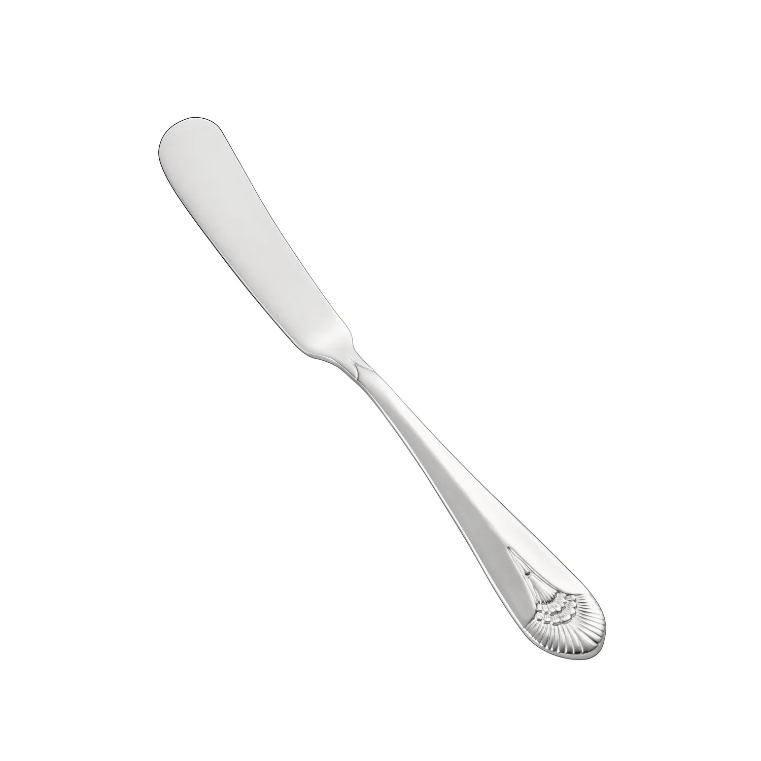 Elevate your dining experience with the Royal Butter Spreader, an essential tool for any kitchen or dining setting. Crafted from premium 18/8 stainless steel, this butter spreader combines elegance with durability, ensuring it withstands the demands of both casual and formal dining. Its Xtra Heavyweight construction offers a substantial feel in the hand, bringing a touch of sophistication to every meal. Measuring at a convenient 6 3/4 inches, the spreader provides optimal control and precision, making it perfect for effortlessly spreading butter, jams, and soft cheeses. The sleek and timeless design complements any table setting, from contemporary to classic. Whether you're hosting a lavish dinner party or enjoying a quiet breakfast, this butter spreader enhances the presentation and enjoyment of your culinary creations. Its polished finish not only resists tarnish and corrosion but also maintains its stunning luster, ensuring it remains a staple in your cutlery collection for years to come. Ideal for both professional chefs and home cooks, the Royal Butter Spreader is a must-have accessory that blends functionality with a touch of luxury, making it the perfect choice for those who appreciate the finer details in dining.