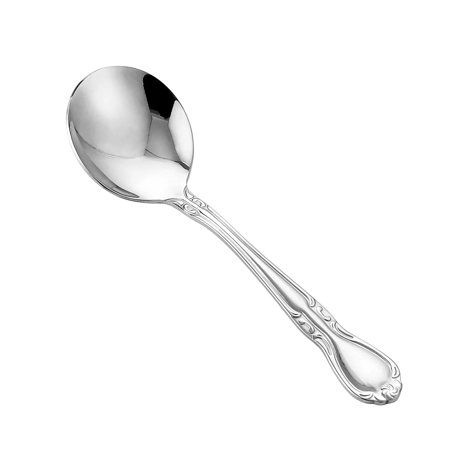 Elevate your dining experience with the exquisite Glamour Bouillon Spoon, meticulously crafted from premium 18/8 stainless steel to ensure both durability and a luxurious aesthetic. Measuring 5 7/8 inches in length, this spoon is not just a utensil; it's a statement of elegance and functionality. Its perfect balance and ergonomic design make it ideal for savoring the rich flavors of your favorite soups and broths. The Glamour Bouillon Spoon shines with a mirror-polished finish that adds a touch of sophistication to any table setting, whether you're hosting a formal dinner or enjoying a cozy family meal. Designed for those who appreciate the finer things in life, this spoon boasts an extra heavyweight construction, offering a substantial feel in hand that speaks to its quality and craftsmanship. Whether you're a professional chef looking to enhance your culinary presentations or a home cook aiming to impress your guests, the Glamour Bouillon Spoon is the perfect choice for adding a touch of glamour to your tableware collection. Experience the perfect blend of style and practicality with this stunning spoon, and make every dining occasion a memorable one.