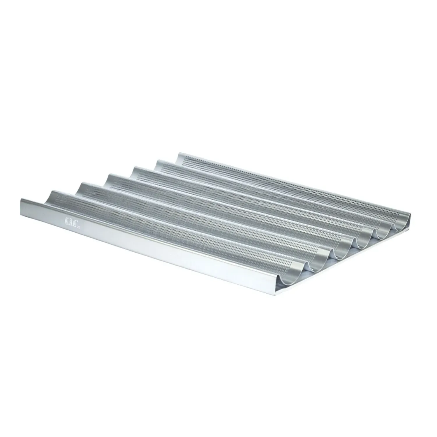 A practical and stylish solution for serving food and drinks, the French Baguette Pan ALBP-6 is an essential addition to any restaurant kitchen. Designed to accommodate six loaves at once, this pan measures 26x18 inches, making it perfect for producing fresh, crusty baguettes that are sure to delight your patrons. Crafted from high-quality aluminum, the French Baguette Pan ensures even heat distribution, resulting in perfectly baked bread every time.