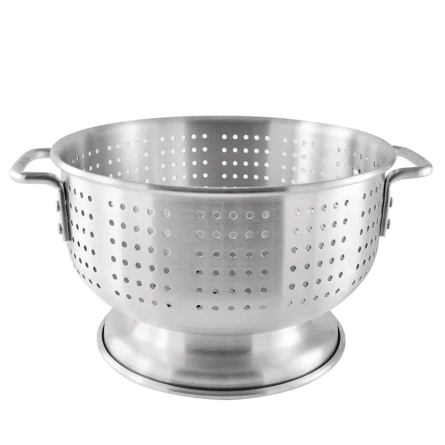Ideal for stylish food presentations and gourmet dishes, the ALCL-16SH Colander is an essential addition to any professional kitchen. This 16-quart colander, crafted from high-quality aluminum, is designed to meet the rigorous demands of a bustling restaurant environment. Its flat handles provide a secure grip, ensuring ease of use when draining large quantities of pasta, vegetables, or seafood. The footed base elevates the colander, allowing for efficient drainage and preventing contact with surfaces, which is crucial for maintaining hygiene and food safety standards.