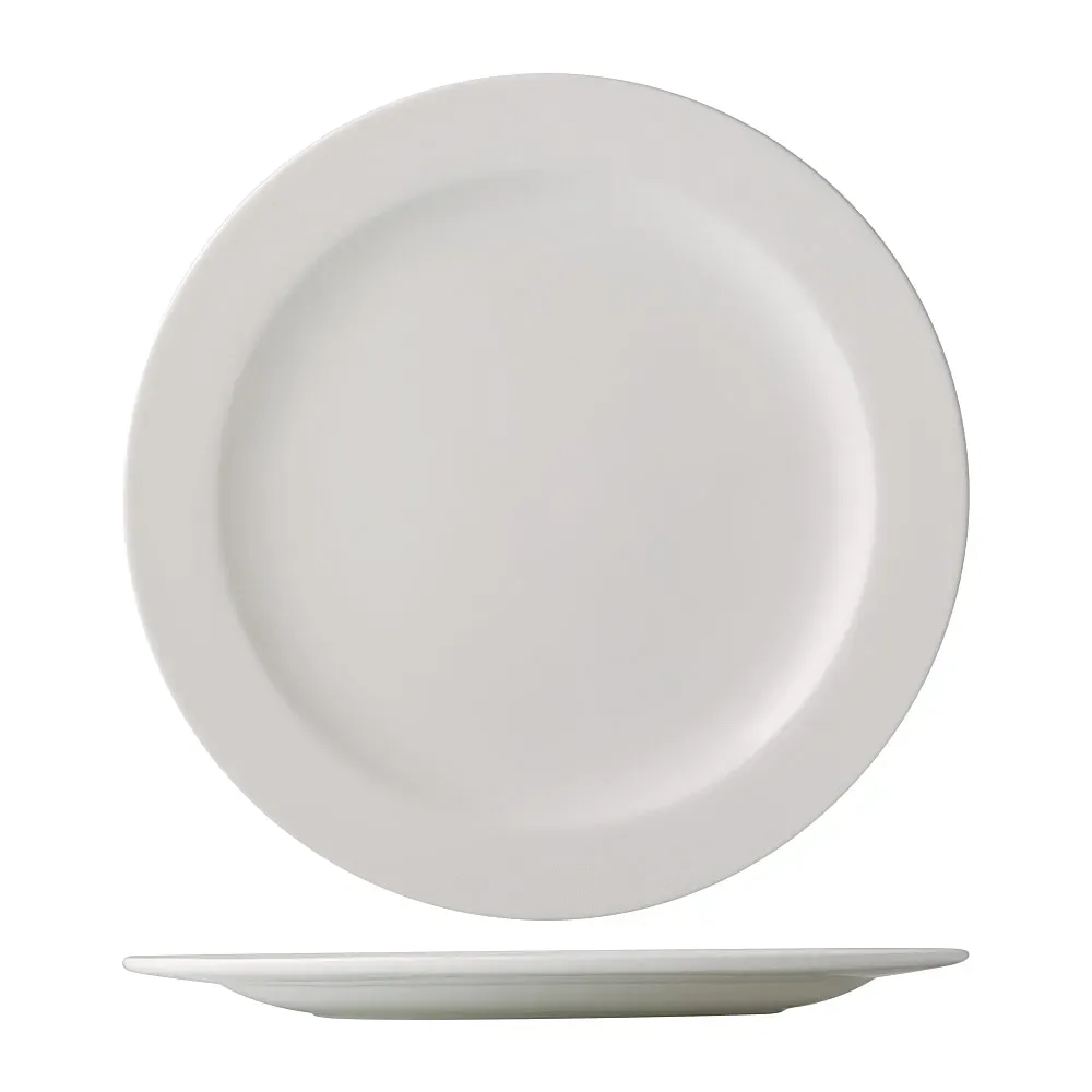 Introducing the CAC China ALP-7 Plate, China a premium tool for a successful setup in your commercial restaurant. Crafted by CAC China, this plate is designed to elevate your dining experience. With a diameter of 7-1/2" and a medium rim, it offers ample space for your culinary creations while adding a touch of elegance to your table setting. Made from durable porcelain in a classic Bone White color, this plate is dishwasher, oven, and microwave safe, ensuring convenience and versatility in a busy restaurant kitchen. The glazed foot provides stability and prevents slipping, while the round shape adds a modern twist. Whether you're serving appetizers, entrees, or desserts, the CAC China ALP-7 Plate is the perfect choice for showcasing your culinary masterpieces with style and sophistication.