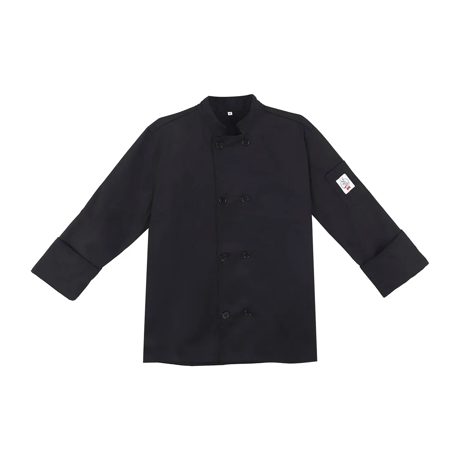 Elevate your culinary prowess with the Chef's Pride Jacket in classic black, designed for both style and functionality in the bustling kitchen environment. Crafted from high-quality, breathable fabric, this jacket ensures comfort during long hours of culinary creativity, while maintaining a polished, professional appearance. The sleek black finish not only exudes sophistication but also offers a practical solution for hiding those inevitable kitchen stains. With its tailored fit, this medium-sized jacket provides ease of movement, allowing you to whisk, chop, and sauté with confidence. The double-breasted design and traditional knotted buttons add a timeless touch, making it a staple piece in every chef's wardrobe. Featuring a convenient pocket on the sleeve, it offers easy access to essential tools, ensuring efficiency is always at your fingertips. Whether you're leading a team in a high-end restaurant or experimenting with new recipes at home, the Chef's Pride Jacket is your trusted companion, combining durability with elegance. Experience the perfect blend of style, comfort, and practicality, making this jacket not just a uniform, but an essential part of your culinary identity. Embrace the pride of a chef with a jacket that matches your passion for excellence.