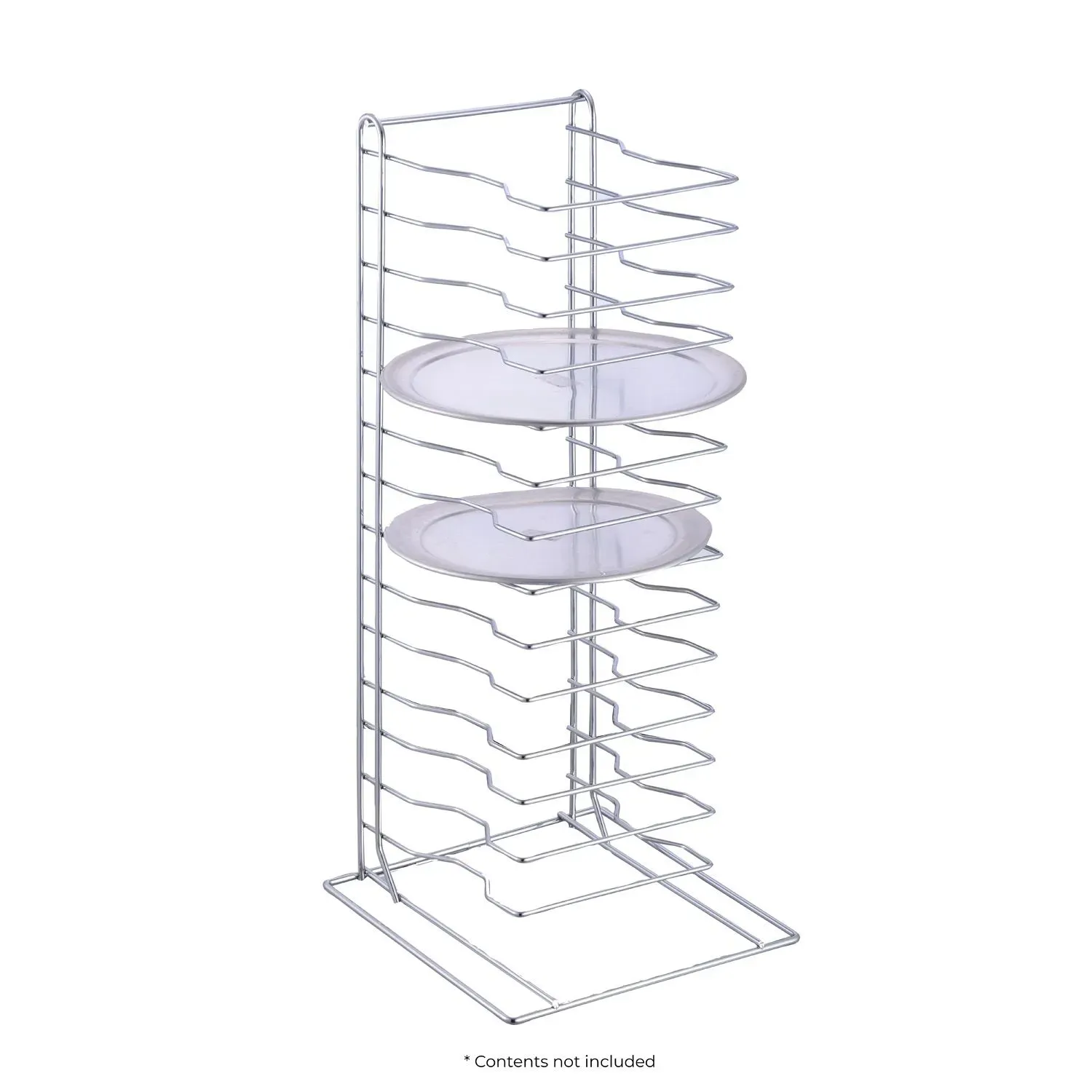 A must-have for chefs who value both style and function, the APZR-15 Pizza Pan Rack is an essential addition to any bustling restaurant kitchen. This chrome-plated, 15-tier marvel is designed to streamline your pizza preparation process, offering both durability and elegance. The gleaming chrome finish not only enhances the aesthetic appeal of your kitchen but also ensures long-lasting performance, resisting rust and corrosion even in the busiest environments.