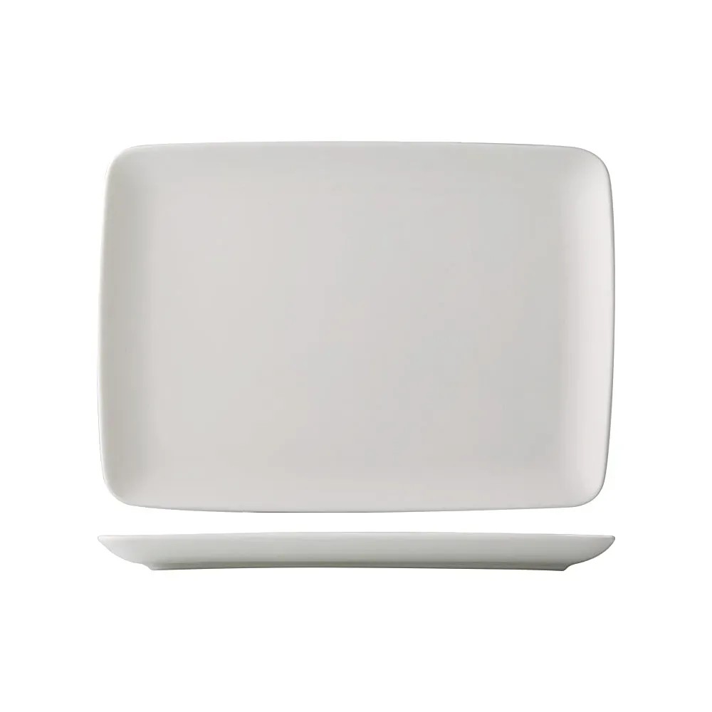 Set your restaurant apart with the CAC China ARA-RT12 Platter. This rectangular, coupe-style platter is designed to elevate your culinary creations and impress your guests. Made of durable porcelain in a classic Bone White color, this platter is not only visually appealing but also dishwasher, oven, and microwave safe, making it perfect for busy commercial restaurant use. With dimensions of 12"L x 8-3/4"W x 7/8"H, it provides ample space to showcase your signature dishes. The glazed foot adds a touch of elegance, while the high-quality craftsmanship ensures long-lasting performance. Whether you're serving appetizers, entrees, or desserts, this CAC China platter is a versatile and essential addition to your restaurant's tableware collection. Don't settle for ordinary platters when you can elevate your presentation with the ARA-RT12 Platter from CAC China.