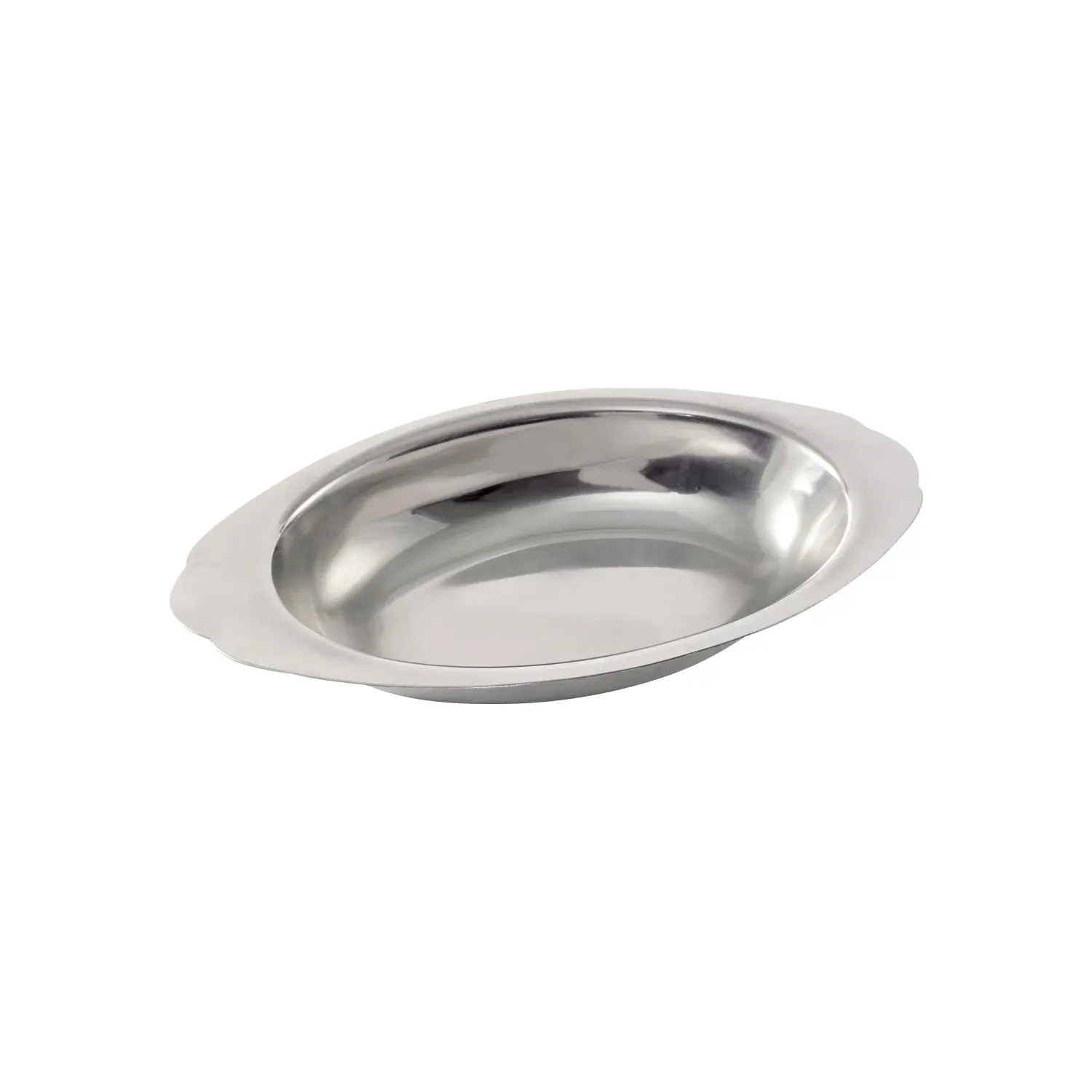 Elevate your culinary presentation with our exquisite Au Gratin Dish, meticulously crafted from premium stainless steel to ensure both durability and elegance. This 20oz dish is perfect for serving mouth-watering, oven-baked dishes with flair, making it an essential addition to any kitchen or restaurant. Its sleek, polished design effortlessly complements any table setting, while its robust construction ensures it withstands the rigors of frequent use. The dish's versatile size is ideal for individual servings or sharing portions of your favorite au gratin recipes, casseroles, or side dishes. Designed with both functionality and style in mind, the stainless steel material ensures even heat distribution, ensuring your culinary creations are cooked to perfection every time. Moreover, its easy-to-clean surface makes post-dining tidying a breeze, allowing you to spend more time enjoying your meals and less time on maintenance. Whether you're a professional chef or a home cook with a passion for gourmet dishes, this Au Gratin Dish is your ticket to serving up deliciously crispy and cheesy delights that are sure to impress. Delight your guests and enhance your dining experience with this must-have kitchen staple, designed to transform ordinary meals into extraordinary occasions.