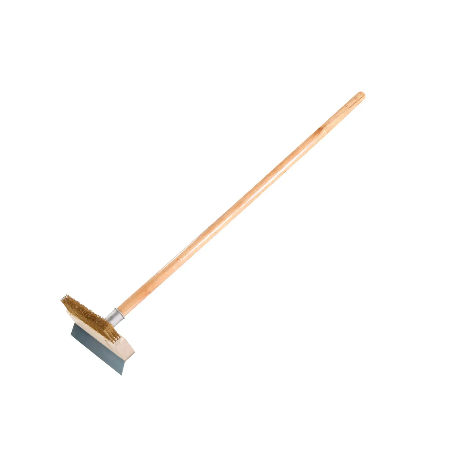 Introducing the ultimate solution for maintaining your pizza oven in peak condition, the Pizza Oven Brush/Scraper combines practicality with durability to ensure your cooking space stays spotless. Measuring a robust 10 inches in length, this brush comes with a substantial 36-inch wooden handle, giving you the reach and leverage needed to clean the deepest corners of your oven without straining yourself. Specifically designed for the professional and home chef alike, this brush features tough brass bristles that effortlessly tackle baked-on residues and charred remnants, ensuring your pizza oven remains in pristine condition. The integrated scraper edge is perfect for removing stubborn bits, making it an essential tool for anyone serious about their pizza-making craft. Crafted with a focus on longevity and ease of use, the wooden handle offers a comfortable grip that minimizes fatigue, even during extended cleaning sessions. Whether you're a pizzeria owner or a pizza enthusiast, this pizza oven brush will become your go-to tool for maintaining a clean and efficient cooking environment. Elevate your pizza-making experience and enhance your kitchen's sanitation with this exceptional, industry-standard pizza oven brush.