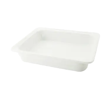 Introducing the CAC China BF-102 Food Pan, China. This rectangular porcelain food pan is a must-have for any commercial restaurant. With dimensions of 12-3/4"L x 10-3/8"W x 2-1/2"H, it is the perfect size for storing and serving a variety of dishes. The BF-102 is dishwasher, oven, and microwave safe, making it incredibly versatile and convenient for busy restaurant kitchens. Its super white color adds a touch of elegance to any presentation, while its durable construction ensures long-lasting use. Designed by CAC China, a trusted vendor in the industry, this food pan is packed with precision and attention to detail. Whether you're serving hot or cold food, the CAC China BF-102 Food Pan is the ideal choice for maintaining the quality and freshness of your culinary creations.