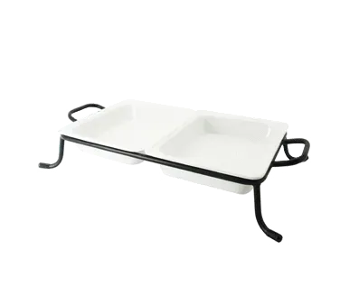 Stay at the culinary forefront with CAC China's BF-G212 Food Pan. Designed for commercial restaurant use, this rectangular porcelain pan set includes two 1/2 size food pans, measuring 12-3/4"L x 10-3/8"W x 2-1/2"H. With its dishwasher, oven, and microwave-safe properties, this pan set offers convenience and versatility in any kitchen. The set also includes a rectangular rack with divider bars and handles, allowing for easy organization and transportation of food items. Made with CAC China's signature Super White porcelain, this food pan set adds a touch of elegance to any culinary presentation. Whether you're serving hot or cold dishes, this durable and stylish food pan set is a must-have for any commercial restaurant. Trust CAC China to provide you with high-quality, functional, and visually appealing products that elevate your culinary creations.