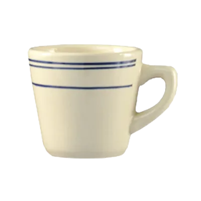 Upgrade your kitchen capabilities with the CAC China BLU-1 Cups. Designed for commercial restaurant use, these cups are a must-have for any food establishment. With a capacity of 7 oz., they are perfect for serving coffee, tea, or other hot beverages. The round shape and blue band design add a touch of elegance to your table setting, while the American white color complements any decor. Made of stoneware ceramic, these cups are dishwasher, oven, and microwave safe, ensuring easy cleaning and versatility. Whether you're running a cafe, bistro, or fine dining establishment, the CAC China BLU-1 Cups are the ideal choice for serving your customers in style. Upgrade your restaurant today and impress your guests with these high-quality cups.