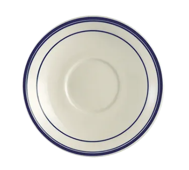 Elevate culinary experiences with the CAC China BLU-2 Saucer. This saucer is a must-have for any commercial restaurant looking to enhance their dining experience. Crafted with stoneware ceramic, it exudes elegance and durability, making it perfect for daily use in busy restaurant settings. The 6" diameter and 1" height provide ample space for serving hot beverages and delectable treats. Its dishwasher, oven, and microwave-safe properties ensure easy cleaning and versatility in food preparation. The blue band design on the saucer adds a touch of sophistication to any table setting, while the American white color complements a variety of dishware. Trust CAC China, a reputable vendor known for their high-quality china products, to deliver exceptional performance and style to your establishment.
