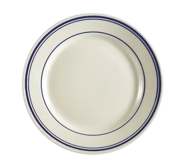 Invest in quality solutions with CAC China, BLU-5, Plate, China. This 5-1/2" dia. x 1/2"H round plate is perfect for commercial restaurant use. Crafted with stoneware (ceramic), it offers durability and a touch of elegance to any dining experience. The blue band design on a white background adds a stylish touch to your table setting, making it ideal for upscale establishments. The rolled edge ensures easy handling and prevents spills, while the dishwasher, oven, and microwave-safe features provide convenience and versatility in a busy kitchen. Whether you're serving appetizers, desserts, or small portions, this CAC China plate is a reliable choice that combines functionality, aesthetics, and practicality, making it a must-have for any commercial restaurant.