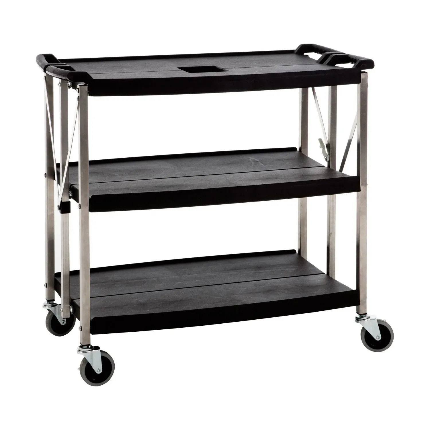Provides a professional and stylish solution for food service, the BTCF-39S Utility Cart is an essential addition to any restaurant setting. This versatile, foldable 3-tier cart is designed to streamline your operations, offering ample space for transporting dishes, ingredients, or supplies with ease. Measuring 39 x 20-3/4 x 36 inches in height, the BTCF-39S Utility Cart is compact enough to navigate tight spaces while providing generous storage capacity across its three tiers.