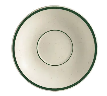 Introducing the CAC China CES-2 Saucer, a premium tool for a successful setup in your commercial restaurant. Crafted by CAC China, this saucer is designed to elevate your dining experience. Made of durable stoneware ceramic, it is dishwasher, oven, and microwave safe, ensuring convenience and versatility in a busy kitchen. The 6" diameter and 1" height provide ample space for serving your delectable creations. The vibrant Emerald Rim and Emerald Speckled design adds a touch of elegance to your table setting, while the American White base complements any decor. Whether you're serving hot beverages or delectable desserts, the CAC China CES-2 Saucer is the ideal choice for commercial restaurant use. Elevate your dining experience with this premium saucer today.
