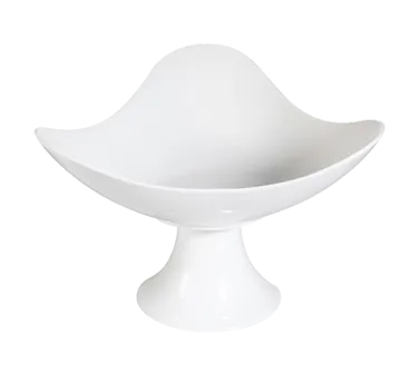 Stay competitive and innovative with the CAC China CFST-13 Display Stand Pedestal. This versatile accessory is perfect for commercial restaurant use, adding a touch of elegance to your food presentation. Crafted from durable porcelain in a sleek Bone White color, this display stand features a wavy triangular shape and is footed for stability. Its generous size of 12-3/4"L x 12-3/4"W x 8-1/2"H allows you to showcase your cakes, fruits, and other delectable treats in style. The CFST-13 is not only dishwasher safe but also oven and microwave safe, making it a convenient choice for busy restaurant kitchens. With its eye-catching design and practical features, this display stand is sure to impress your customers and elevate the overall dining experience. Trust CAC China, a reputable vendor known for their high-quality products, to provide you with the best in commercial restaurant accessories.