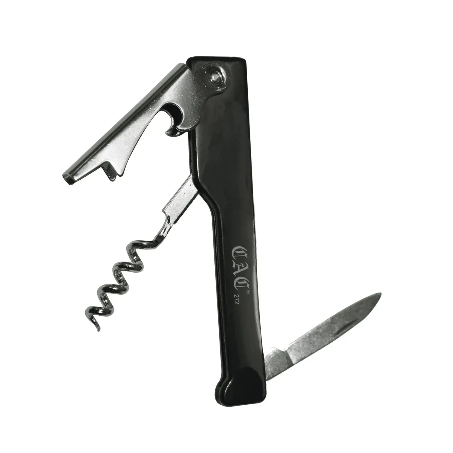 Enhance your restaurant or cafe with practical, stylish dinnerware by introducing the Black Finish Waiter's Corkscrew. This essential tool is designed to elevate the efficiency and elegance of your dining service. The Black Finish Waiter's Corkscrew, with its sleek and sophisticated appearance, seamlessly complements any restaurant decor, adding a touch of class to your wine service.