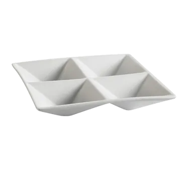 Diversify dining solutions with the CAC China CMP-A7 China Compartment Dish Bowl. This versatile dish is perfect for commercial restaurant use, offering a convenient and stylish way to serve a variety of dishes. With its four compartments, it allows for easy separation of different food items, making it ideal for serving appetizers, tapas, or even condiments. Made of durable porcelain, this dish is dishwasher, oven, and microwave safe, ensuring easy cleaning and versatility in food preparation. The bone white color adds a touch of elegance to any table setting, while the square shape adds a modern twist. Trust CAC China, a reputable vendor in the industry, to deliver high-quality and reliable products for your restaurant needs.