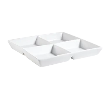 Elevate culinary experiences with the CAC China CMP-D10 Tray. This versatile and stylish compartment tray is perfect for commercial restaurant use. With its four compartments and 6 oz. capacity per compartment, it allows for easy organization and portion control. Made of durable porcelain, this tray is dishwasher, oven, and microwave safe, making it ideal for busy restaurant kitchens. The square shape and Super White color add a touch of elegance to any table setting. Designed by CAC China, a trusted vendor in the industry, this tray is packed with quality and authenticity. Whether you're serving appetizers, sides, or desserts, this tray is a must-have for any commercial restaurant. Don't settle for anything less than the best. Choose the CAC China CMP-D10 Tray and impress your customers with exceptional presentation and functionality.